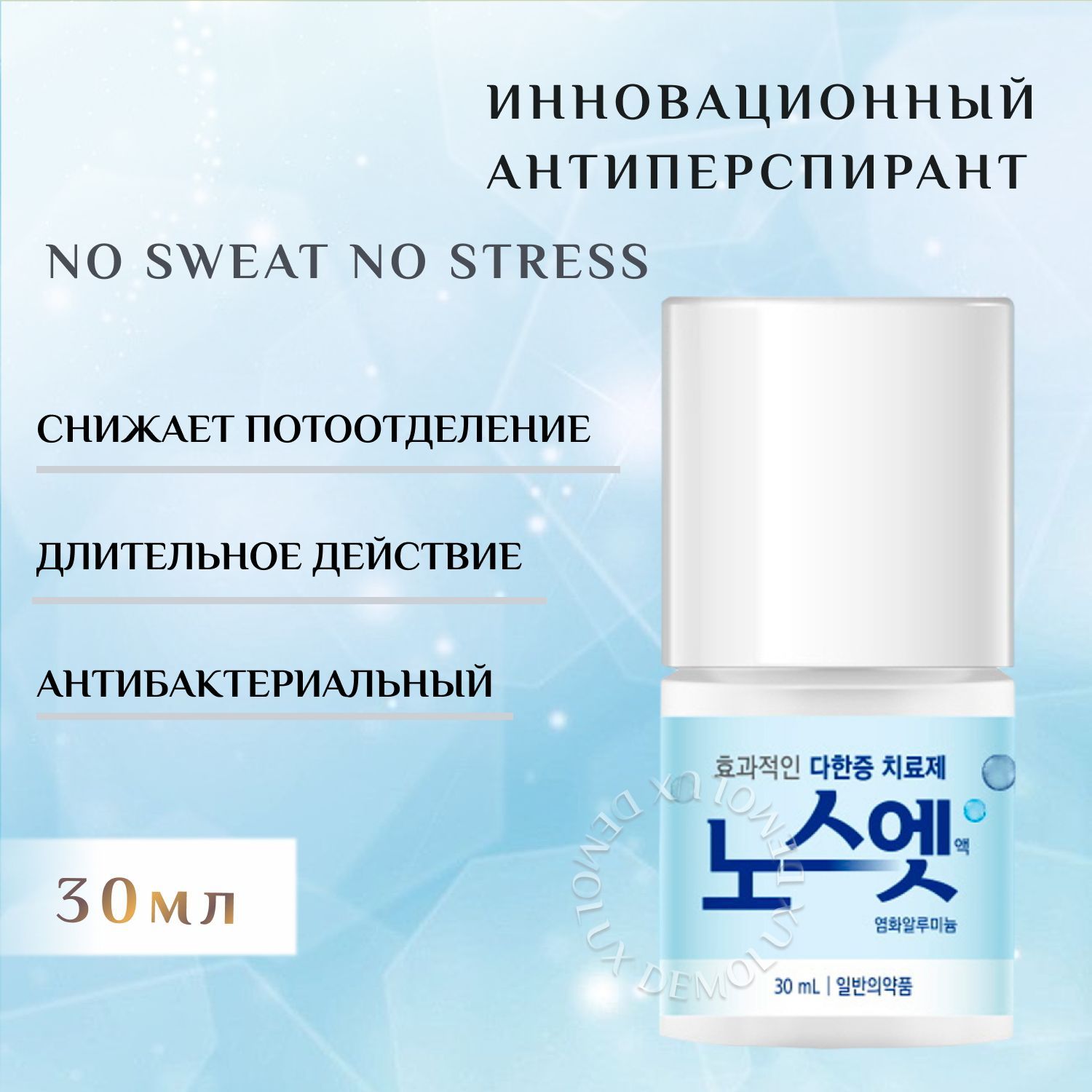 Описание: Антиперспирант No Sweat No Stress Sense Solution устраняет чрезмерную потливость и борется с симптомами гипергидроза, обеспечивая продолжительную защиту от пота.