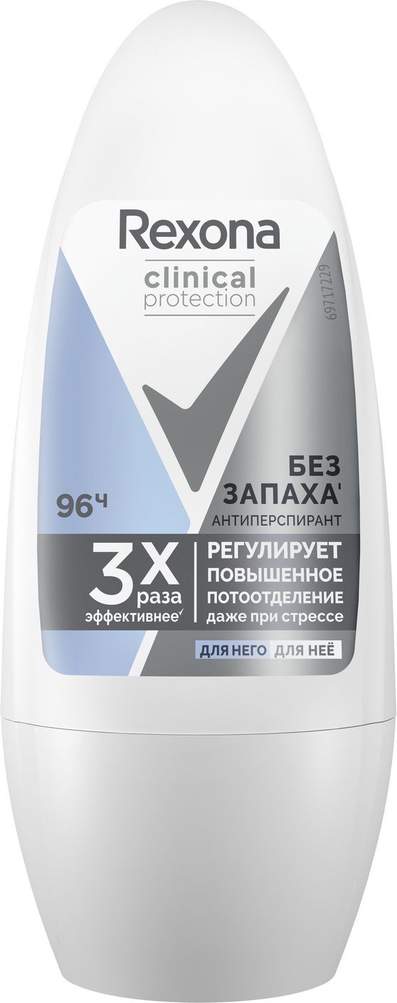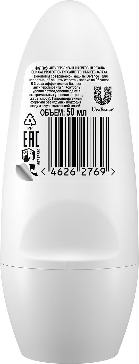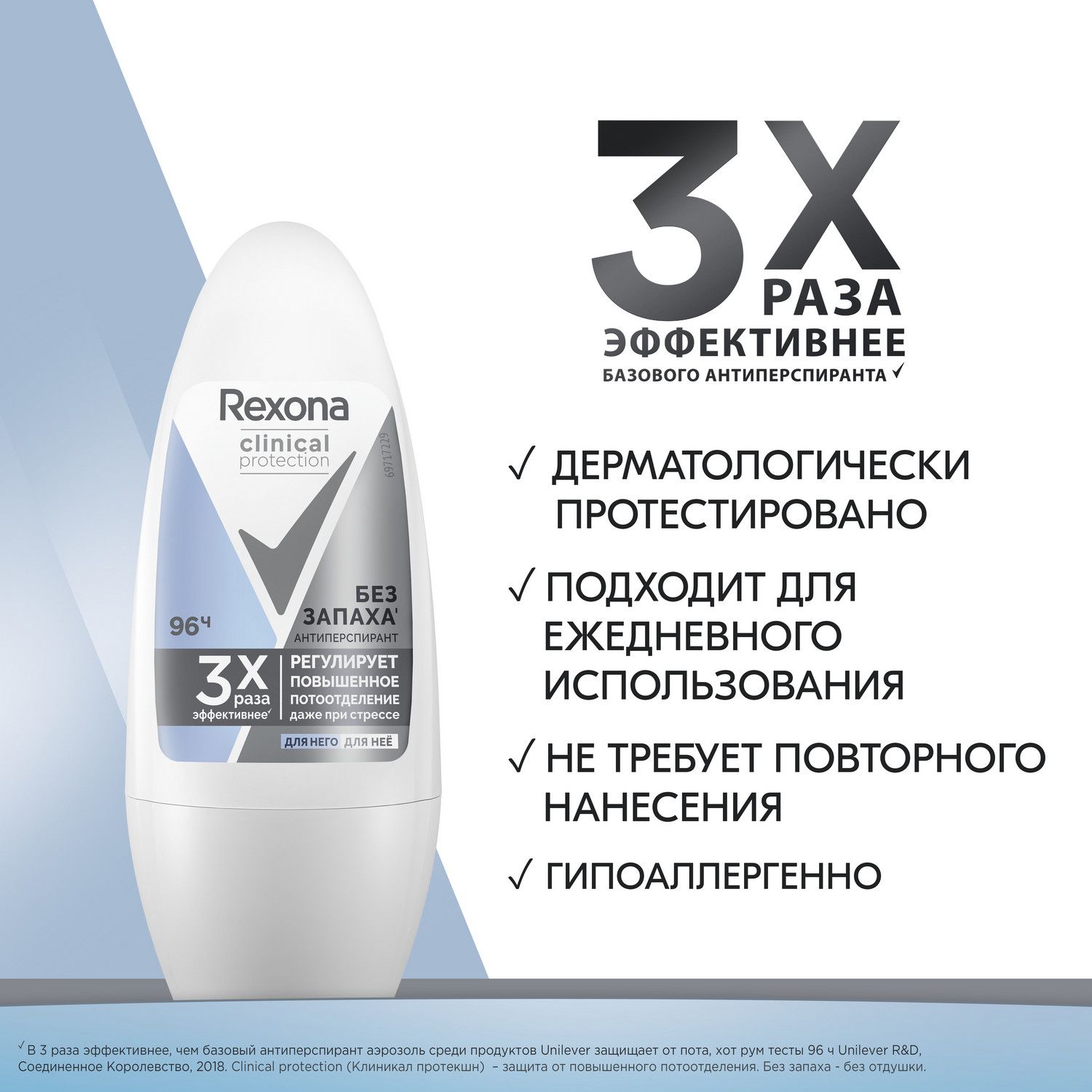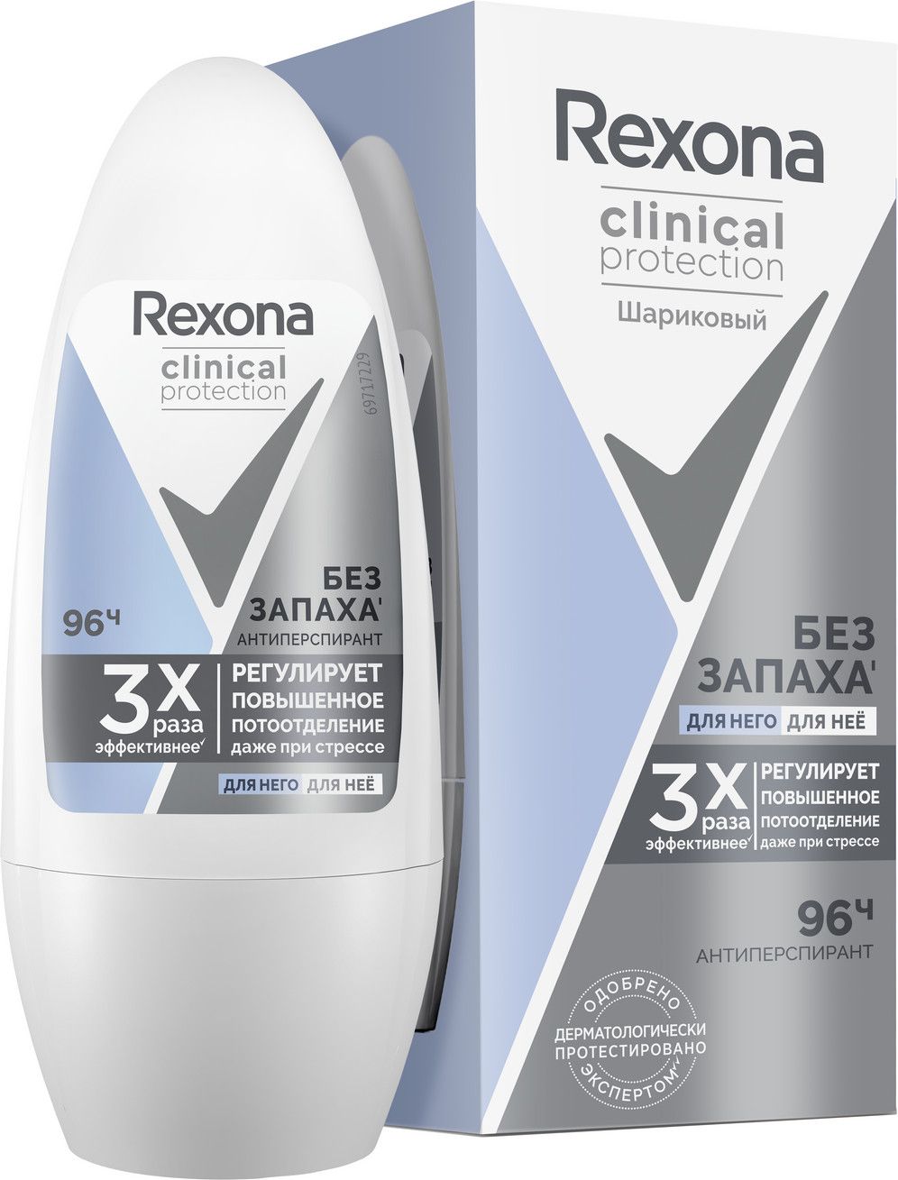 Антиперспирант шариковый Rexona CLINICAL PROTECTION, гипоаллергенный, без запаха, 50 мл