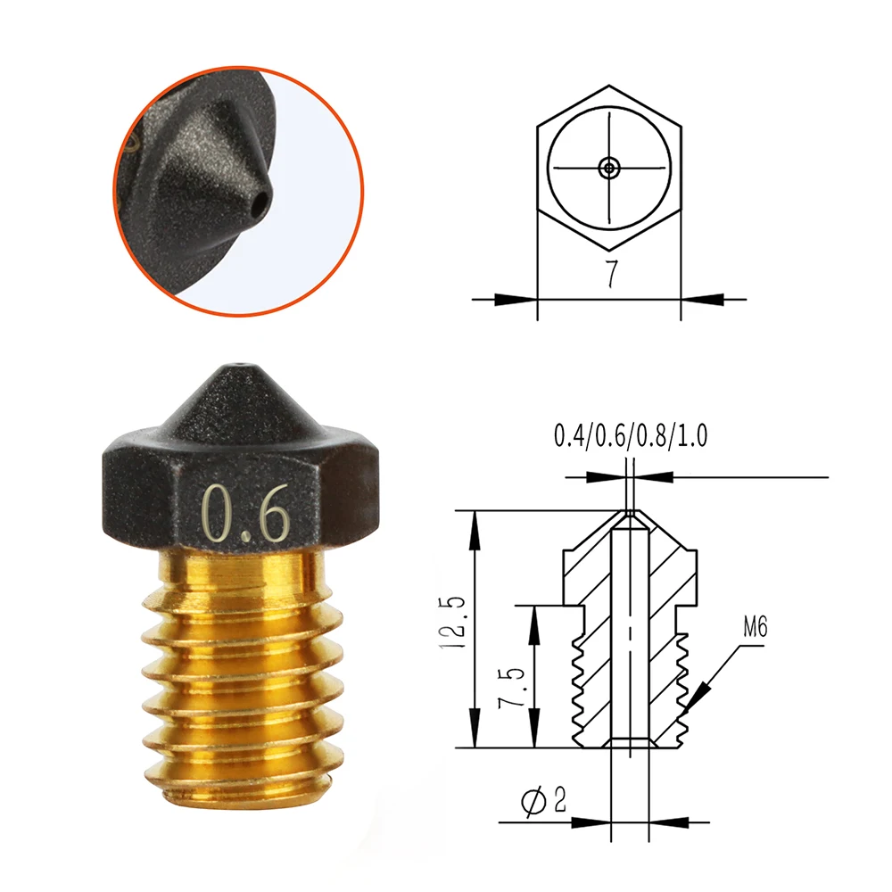 Nozzle hole size 0.2mm 0.3mm 0.4mm 0.5mm 0.6mm 0.8mm 1.0mm