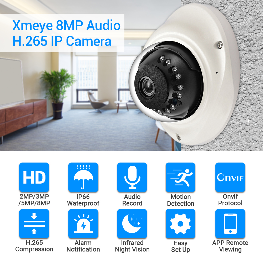 Антивандальная водонепроницаемая наружная купольная IP-камера, запись звука, обнаружение движения