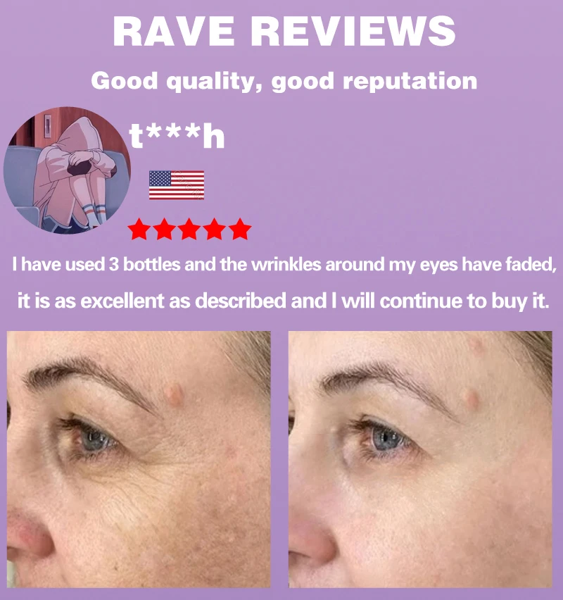 После использования <5 флаконов> эссенции против морщин морщины на ее лице были заполнены