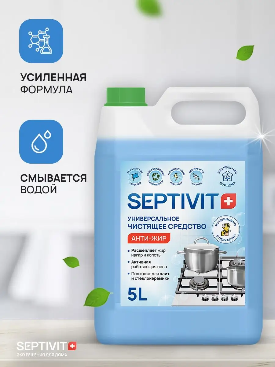 Описание: АНТИЖИР SEPTIVIT Premium - это незаменимое средство, которое удаляет самые стойкие загрязнения. Универсальное чистящее средство анти жир подходит для чистки плит, духовых шкафов, сковородок, микроволновых печей, грилей и других видов загрязнений. Антижир для кухни обладает мощной пеной, которая прекрасно справляется со стойкими загрязнениями, жиром и нагаром. Средство полностью смывается с поверхности, не оставляя разводов. Антижир SEPTIVIT Premium / Септивит - это не просто бытовая химия! Это мощный жироудалитель, с которым повседневная уборка будет в удовольствие. АНТИЖИР SEPTIVIT Premium - это незаменимое средство, которое удаляет самые стойкие загрязнения. Анти жир - это надежное и мощное чистящее средство, специально созданное для борьбы с жиром и нагаром в вашем доме и кухне. Он обеспечивает эффективное удаление жира и пригоревших остатков на различных поверхностях, делая уборку легкой и приятной задачей. С антижиром, вы забудете о трудноудаляемых загрязнениях на вашей кухне. Его мощная формула позволяет мгновенно устранить пригоревшие остатки еды на плите и в духовом шкафу, предоставляя чистые и блестящие поверхности. Средство от жира на кухне успешно удаляет белковые отложения на кухонной посуде обеспечивая безопасность и гигиеничность приготовления пищи. Антижир также надежно справляется от жира и нагара, которые могут прилипать к стенкам СВЧ-печи. Средство для плиты обеспечивает безупречную чистоту и предотвращает накопление жира, подходит для индукционной плиты, для плиты стеклокерамика. Это не только средство для очистки кухни, но и универсальное средство для уборки, которое может применяться на стеклокерамических поверхностях, духовках, СВЧ-печах, грилях и кухонной посуде. С антижиром, вы сможете поддерживать чистоту и блеск всех кухонных поверхностей без лишних усилий. Будьте уверены, что средство для уборки Септивит - это ваш верный помощник в поддержании чистоты в доме и на кухне. Он является идеальным выбором для удаления жира, нагара и других загрязнений, исключая необходимость в тяжелом скруббинге и часах потраченных на уборку. Со средством от жира, ваша кухня всегда будет готова к новым кулинарным приключениям, а ваш дом останется сверкающим и гигиеничным. Приятный аромат средства продлевает ощущение чистоты в доме после уборки. Septivit Premium - ЭКО-решения для Вашего дома!