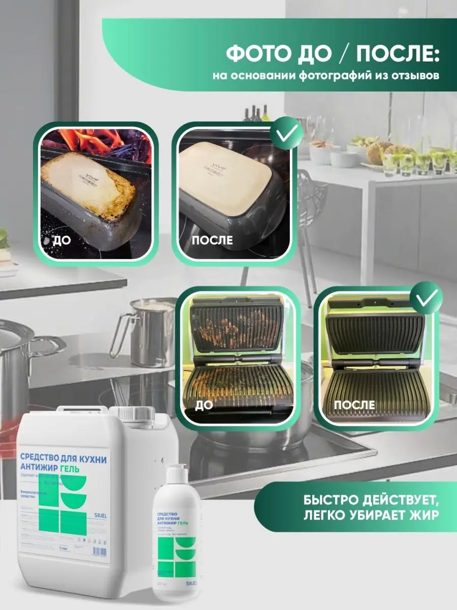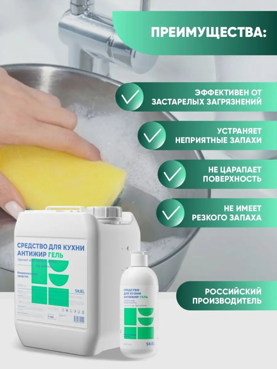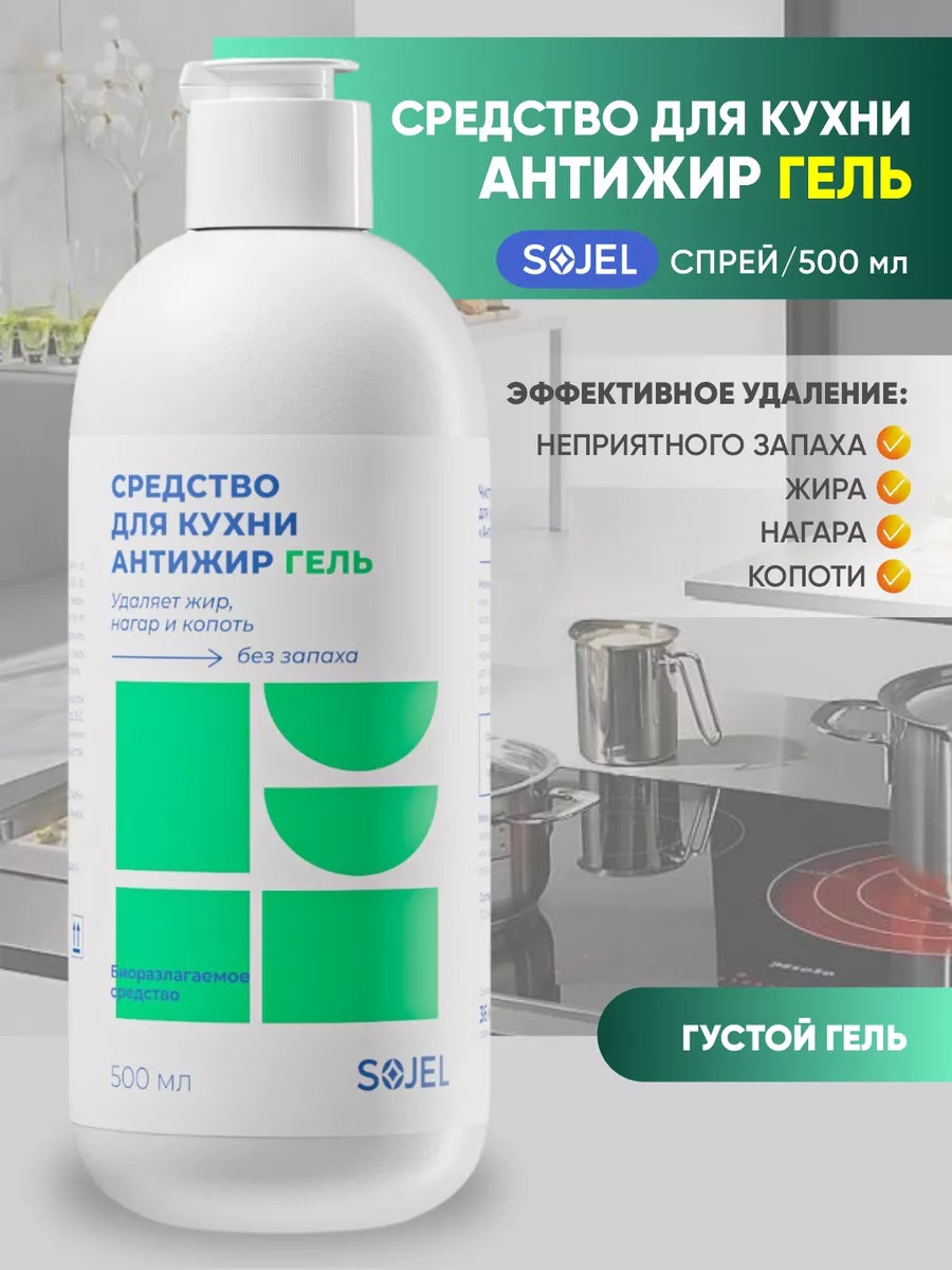 Описание: Чистящее средство для кухни «Антижир» от компании Sojel - отличный помощник для уборки дома, который поможет поддержать ежедневную чистоту без лишних усилий. Биоразлагаемое моющее средство с высоким пенообразованием предназначено для удаления жира нагара копоти и пригоревшей пищи с эмалированных хромированных поверхностей изделий из стекла нержавеющей стали фаянса фарфора со сковородок кухонных плит коптильных камер фритюрниц, грилей, духовых шкафов и микроволновых печей. Бытовая химия для кухни эффективно удаляет белково-жировые пригары и смолы. Средство для уборки дома предназначено для удаления загрязнений с оборудования и поверхностей стойких к воздействию щелочи. Для плиты средство содержит активные чистящие вещества, которые помогают максимально эффективно справиться с застарелыми загрязнениями. Гель полностью смывается водой, не оставляя плёнок, царапин и разводов. Бытовая химия Sojel сделает кухню максимально чистой и блестящей. Анти жир готов к использованию. Способ применения: чистящий гель для кухни использовать в готовом виде или развести с водой 50-100 гр., равномерно нанести на обрабатываемую поверхность, оставить на 30 секунд, в зависимости от степени загрязнения время экспозиции увеличить до 2 минут. Потереть губкой или щеткой, смыть водой. При необходимости процедуру повторить. Закажите бытовую химию для кухни и наслаждайтесь чистотой! Жироудалитель антижир анти-жир для кухни для стеклокерамических плит и духовки