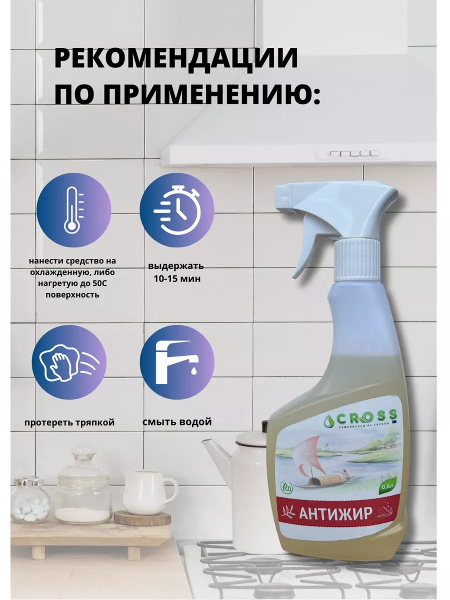 Описание: Спрей антижир для кухни 0,6 л sinerCROSS, универсальное чистящее средство, которое подходит для удаления жира, копоти, нагара с плит, духовых шкафов, вытяжек и других поверхностей на кухне. Оно содержит активные компоненты, которые быстро удаляют жир и пригоревшую пищу с посуды и кухонной бытовой техниуи. Бытовая sinerCROSS является эффективным средством, которое подходит для использования как в домашних условиях, так и в местах общественного питания. Жироудалитель может использоваться для чистки стеклокерамики, духовок, посуды с тефлоновым покрытием и из нержавеющей стали, микроволновок и других поверхностей и кухонной утвари. Моющее средство антижир, также подходит для чистки СВЧ печей и других бытовых установок. Антижир синер CROSS доступно в форме спрея, что обеспечивает более удобное и равномерное распределение на поверхности. Экономичный расход средства и его высокая концентрация делают его незаменимым для повседневной уборки на кухне. Антижир безопасен для окружающей среды и различных видов септических систем, экономичен в использовании, подходит для использования на различных кухонных поверхностях, включая индукционные плиты, жарочные зоны, мебель и другие оборудования, легко смывается водой, содержит активные компоненты, которые быстро и эффективно удаляют жир, копоть и нагар. Жироудолитель sinerCROSS не только удаляет загрязнения, но и устраняет неприятный запах пригоревшей пищи, эффективно удаляет жир различных видов масел, не повреждая поверхности, и не оставляя царапин и разводов на посуде и поверхностях. Способ применение: распылите с помощью пульверизатора жидкость на очищаемую поверхность, оставьте на 10-15 минут, зависит от степени загрязнения для усиления действия, смойте водой, и протрите с помощью тряпки. Для удаления более сильных загрязнений можно потереть щеткой или губкой. Если нагар сильный, рекомендуем повторить процедуру. В процессе чистки не выделяет резкого, таксичного запаха. Приятных вам покупок!