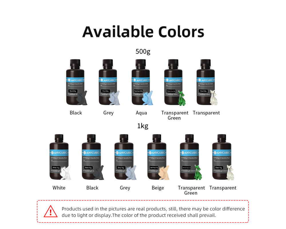 Следуя классической формуле, стандартная цветная УФ-смола Anycubic хорошо интегрирована и сбалансирована с характеристиками точности печати, твердости, текучести и т. Д.