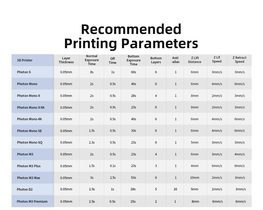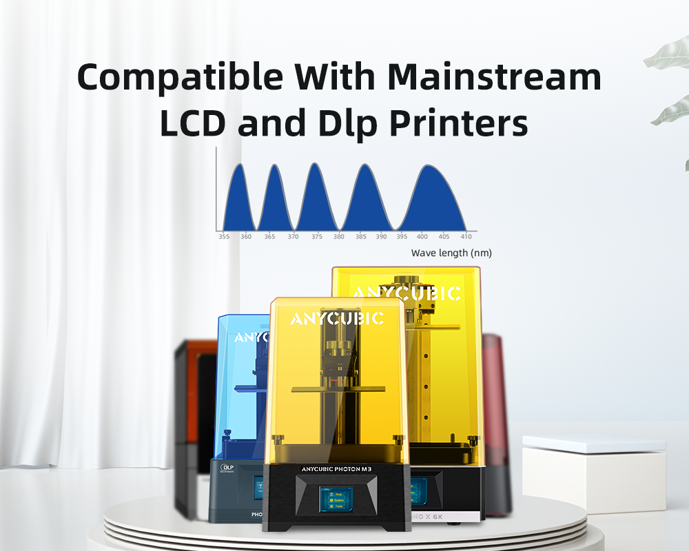 Стабильный и удобный для хранения в различных климатических условиях, Он преодолевает недостатки других смол, которые легко размягчаются влагой и разъедаются окружающей средой.; Чувствительность к длине волны УФ 365-410 нм, особенно, лучшие результаты при использовании с 3D-принтерами Anycubic.