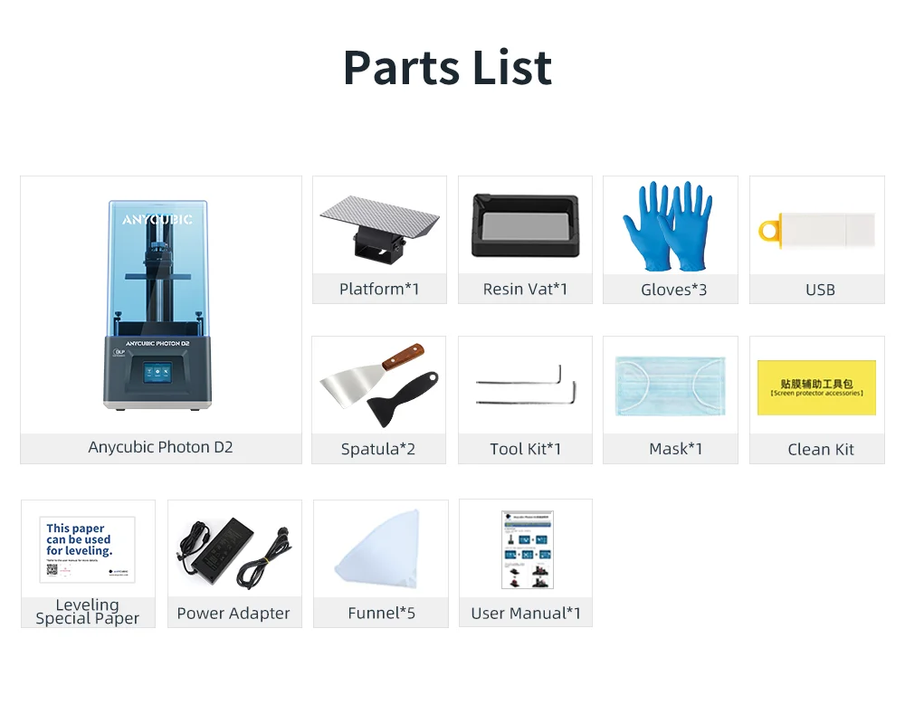 По сравнению с Anycubic Photon Ultra, объем печати Anycubic Photon D2 увеличивается на 62% до 130,56 мм * 73,44 мм * 165 мм; площадь печати увеличивается на 55% до 95,42 см ²