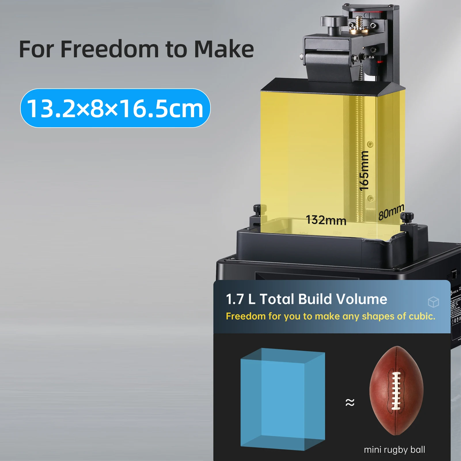 Большой объем сборки: ANYCUBIC Photon Mono 4K имеет большой размер печати 132 мм x 80 мм x 165 мм/5,19 "x 3,14" x 6,49 ", что оставляет достаточно места для печати и свободы для вас, чтобы сделать любые формы 3d моделей. Прозрачная верхняя крышка позволяет контролировать процесс печати, сохраняя при этом 99.95% УФ-светильник коэффициент блокировки, безопасный и легкий для начинающих.