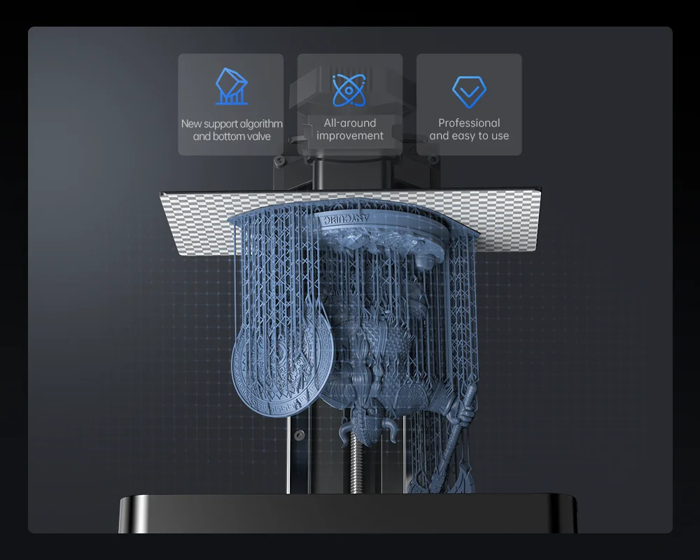 Обновленный Бесплатный слайсер собственной разработки Anycubic Photon Workshop 3,1 обеспечивает еще лучший опыт нарезки при штамповке, поддержке, шелушении и компоновке. Упрощенный пользовательский интерфейс упрощает нарезку. Новая функция ремонта модели также помогает повысить успешность печати.