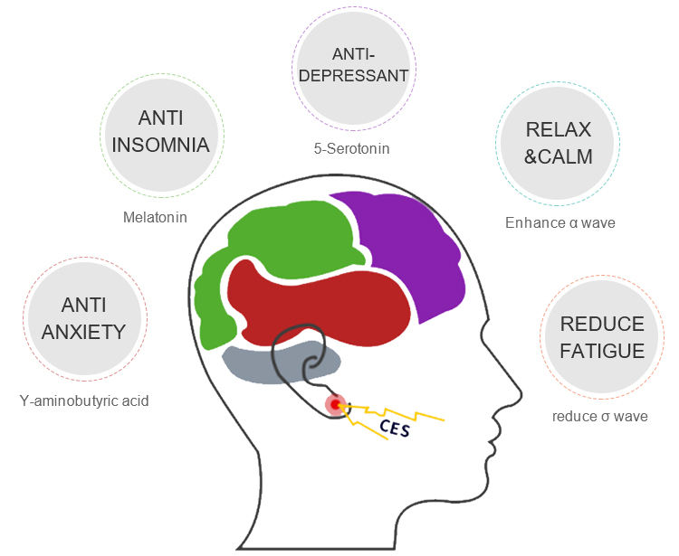 KTS Бессонница Тревога Депрессия CES Спящая терапия Транскраниальный микротоковый стимулятор Устройство для сна Облегчение боли при мигрени