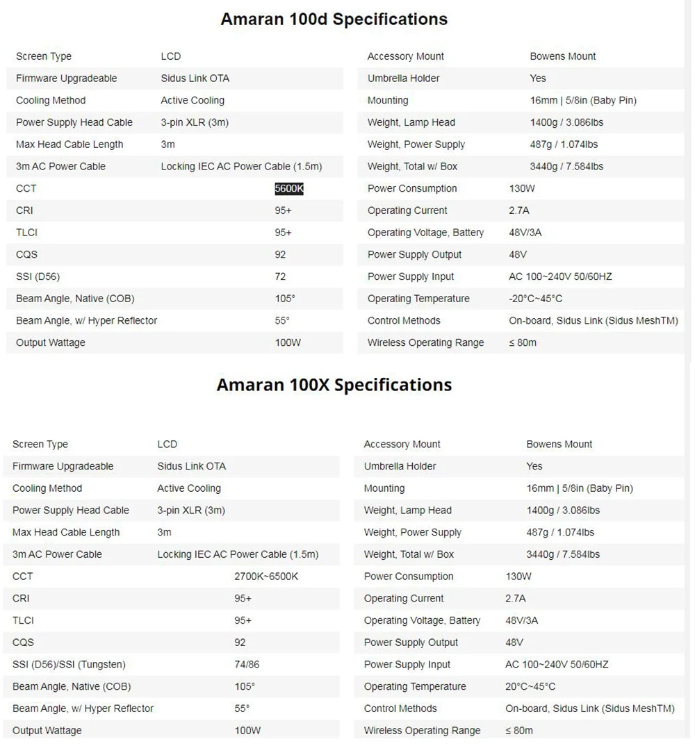 Aputure Amaran 100X,200X двухцветный 2700-6500K 100d,200d 5600K светодиодный фонарь для фотостудии