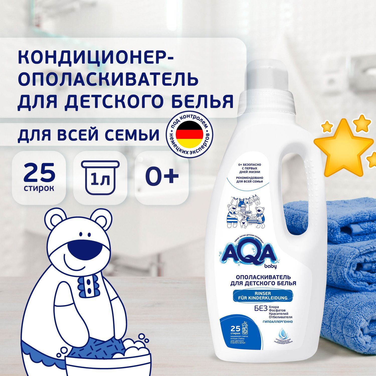 AQA baby Ополаскиватель для детского белья, 1000 мл, с рождения 0+, артикул 9381