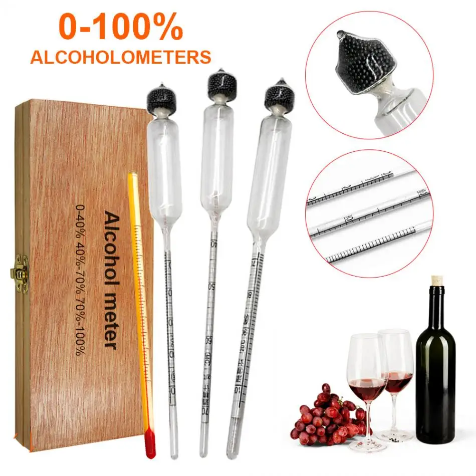 Три шт Ареометр спиртометр от 0 до 100% 0-40 / 40-70 / 70-100 с 1 шт 0-50 градусов термометр