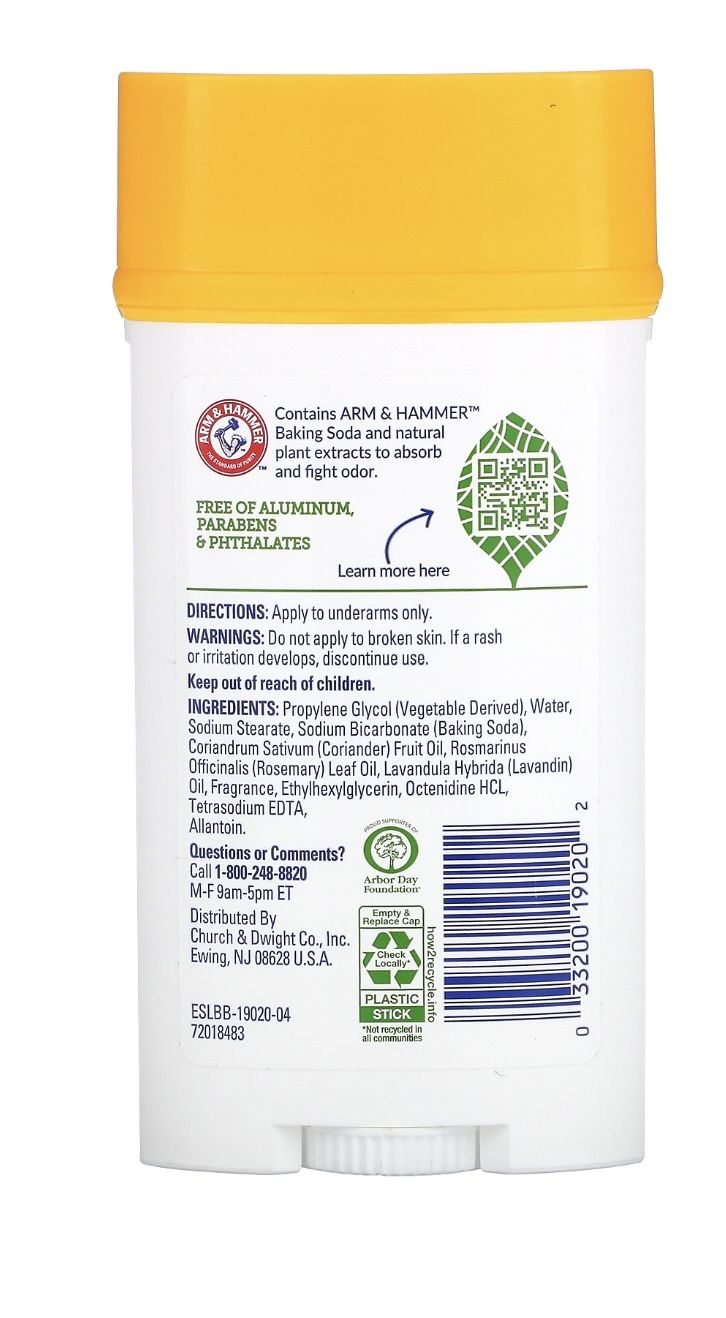 Arm & Hammer, Essentials, Дезодорант с натуральными растительными компонентами, без искусственных ароматизаторов, розмарин и лаванда, 71 г