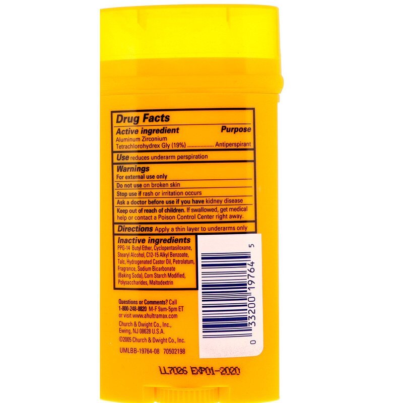 Алюминиевый цирконий Tetrachlorohydrex Gly (19%) Неактивные Ингридиенты Бутиловый эфир PPG-14, циклопентасилоксан, стеариловый спирт, c12-15 алкилбензоат, тальк, гидрированное касторовое масло, вазелин, ароматизатор, бикарбонат натрия (пищевая сода), модифицированный кукурузный крахмал, полисахариды, мальтодекстрин.