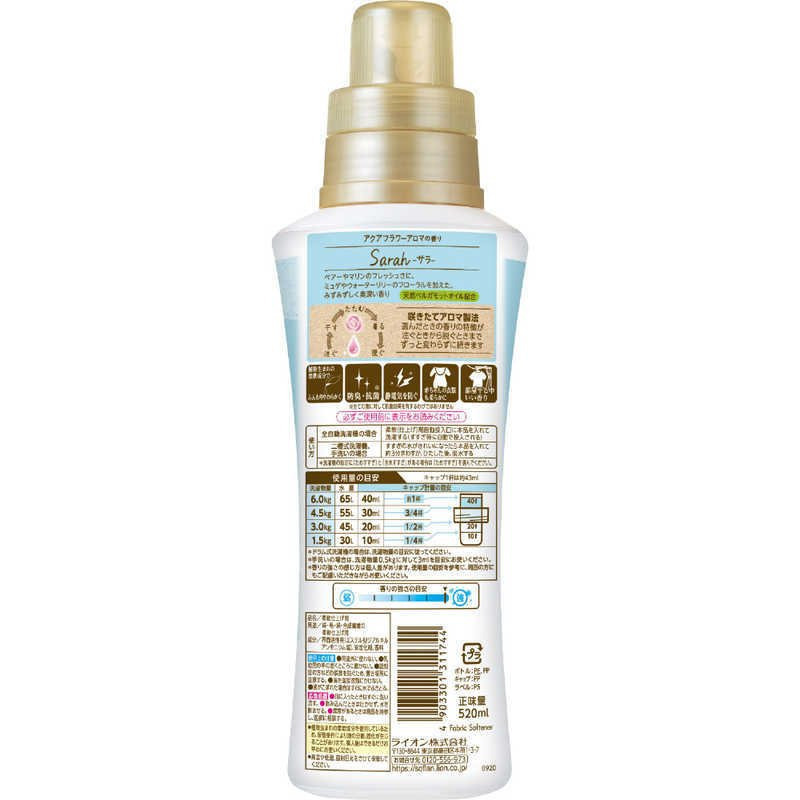 Японский кондиционер для белья Арома Рич "Сара"; Объем - 520 мл; Пластиковая бутылка с крышкой дозатором.