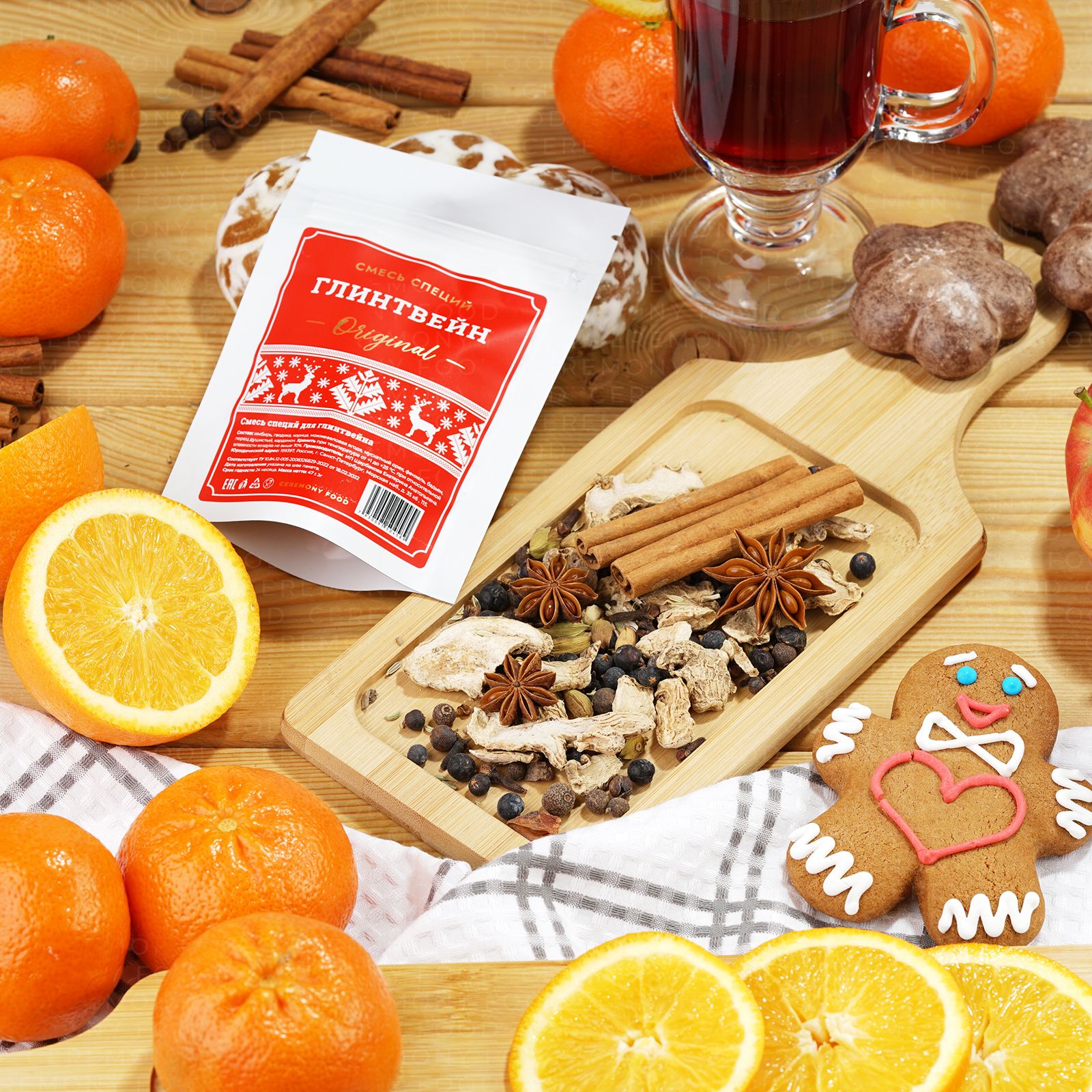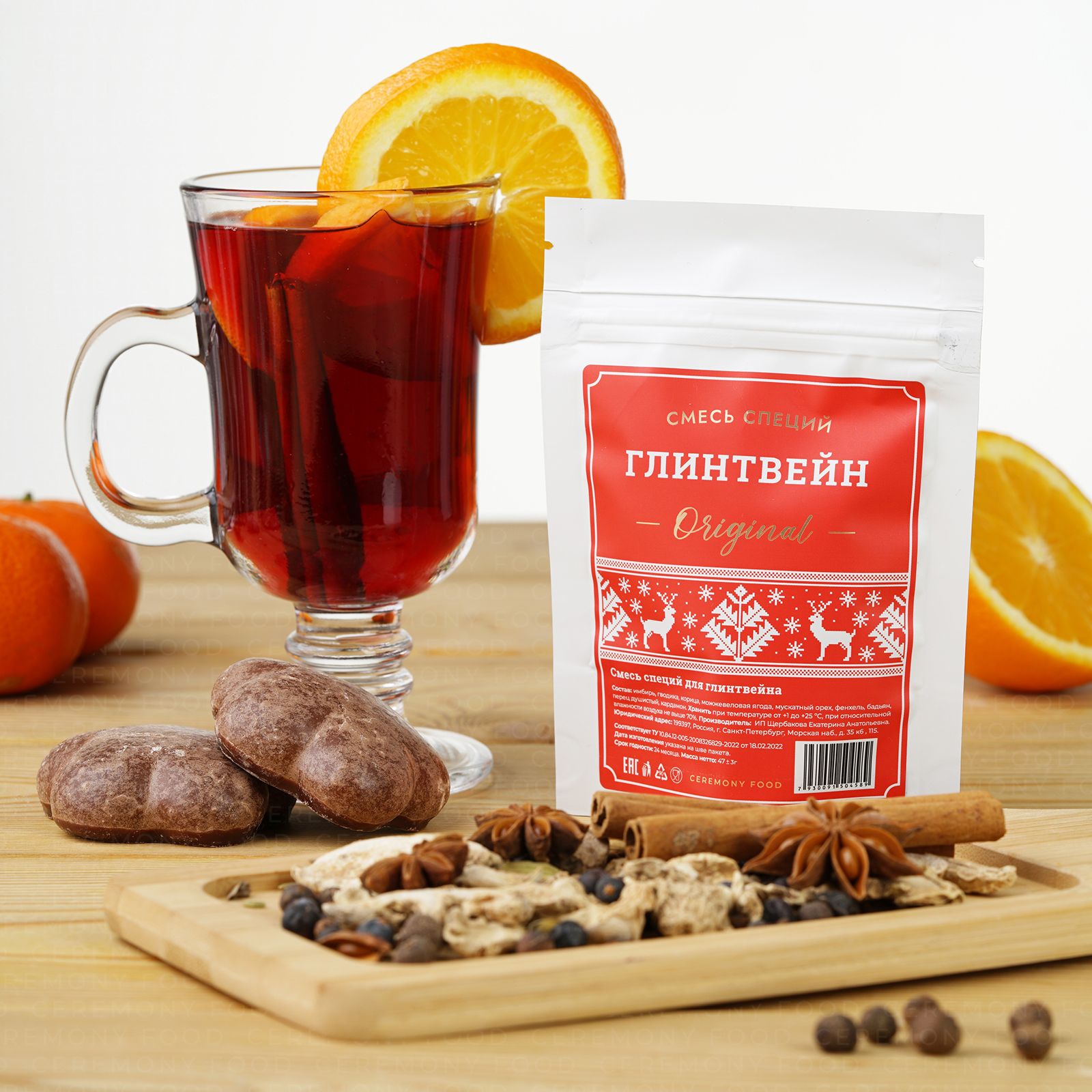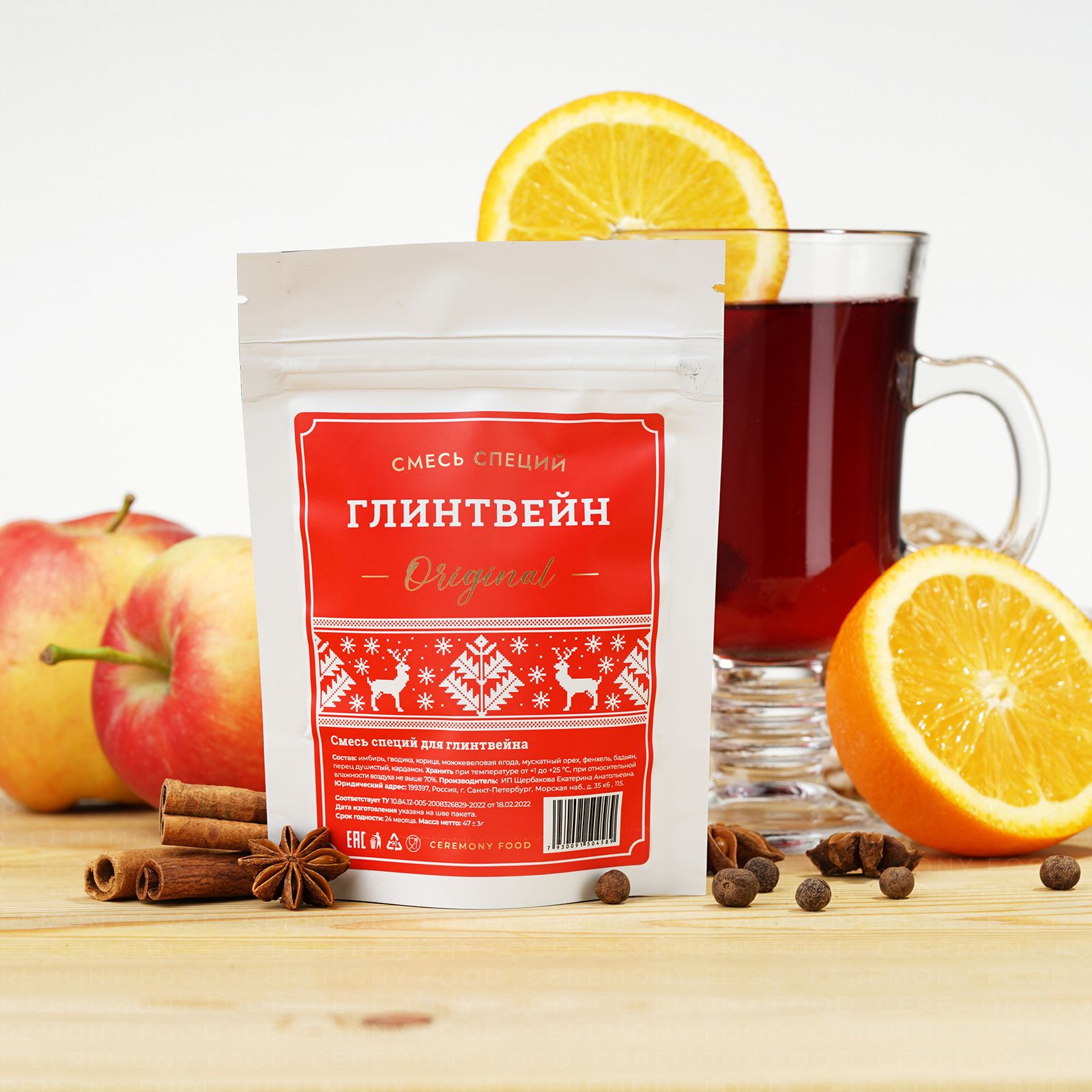 Ароматный Набор Специй для Глинтвейна 47 г. Ceremony Food (Классическая Смесь Пряностей: Имбирь Гвоздика Корица, Мускатный Орех, Перец, Бадьян, Кардамон, Сухая Приправа Основа для Горячих Напитков)