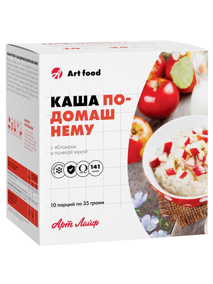 Артлайф Каша "По-домашнему" с яблоками и льняной мукой, 10 пакетиков