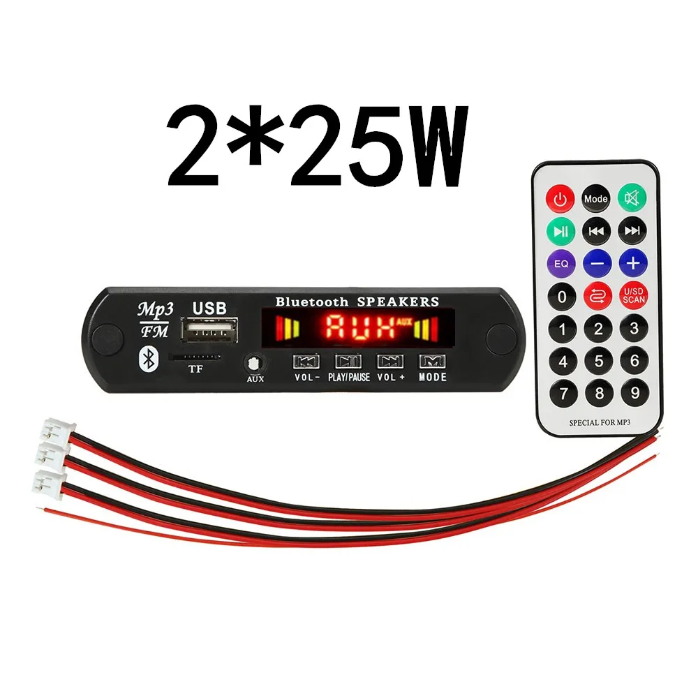 ARuiMei 2*25W Amplifier MP3 Player Decoder Board 12V Bluetooth 5.0 50W Car FM Radio Module Support TF USB AUX