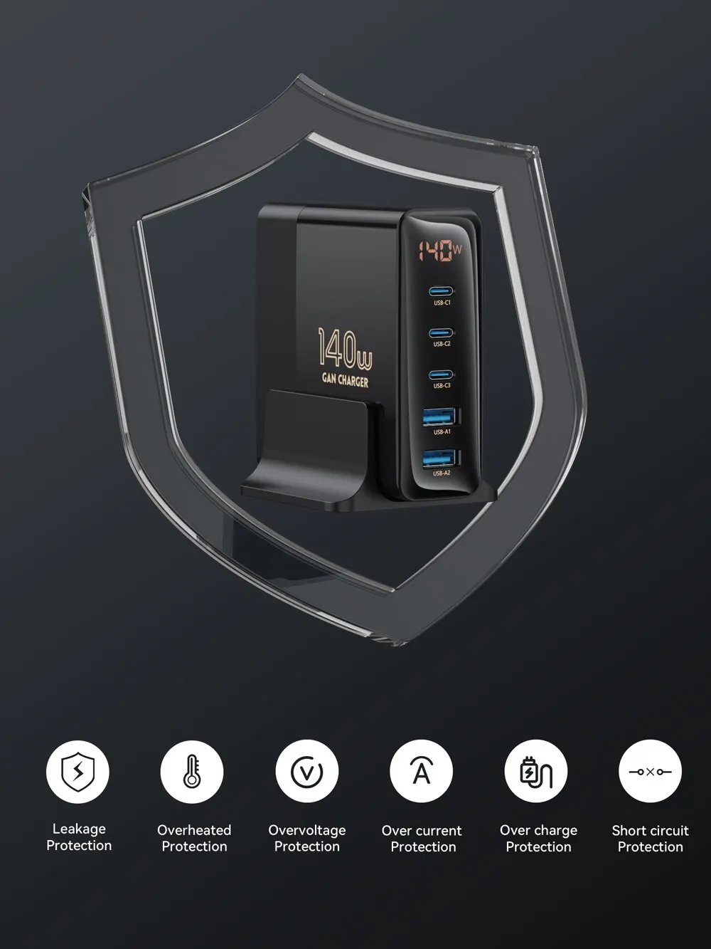 Зарядное устройство GaN мощностью 140 Вт с поддержкой протоколов быстрой зарядки: