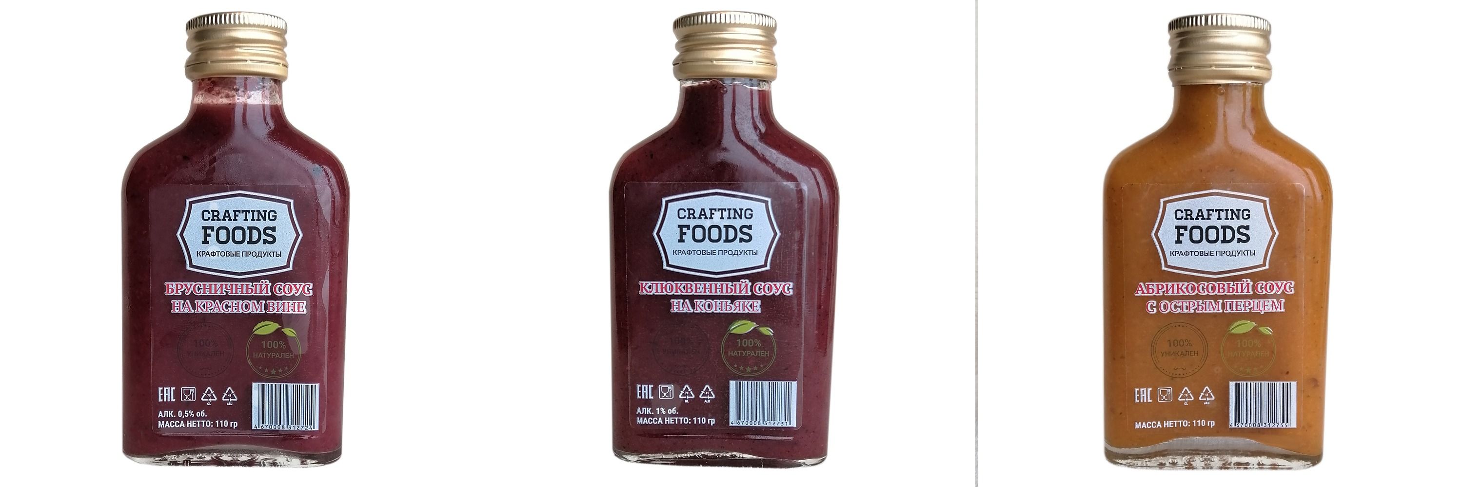 Ассорти соусов (брусничный 110 гр, клюквенный 110 гр, абрикосовый 110 гр.) - набор из 3 шт.