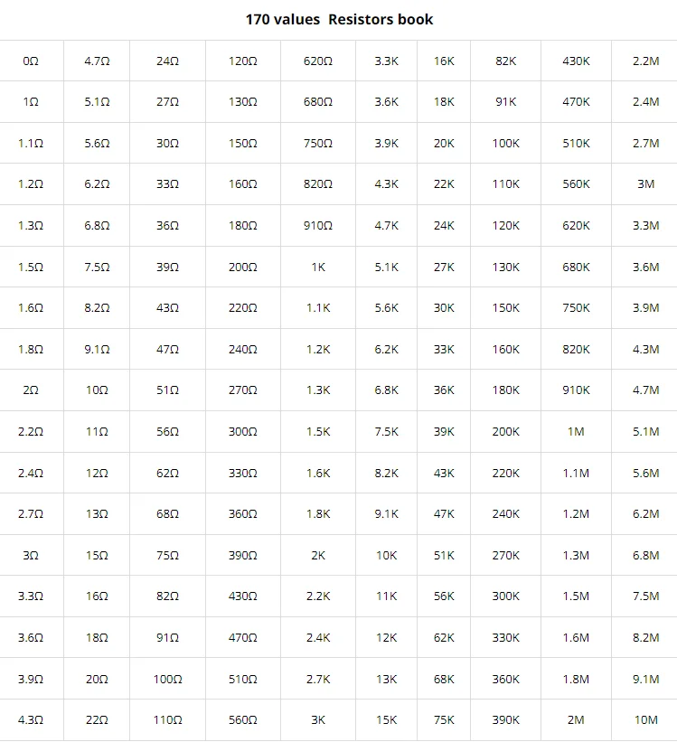 0.1Ω-1Ω резисторная книга (25 значений) 1%