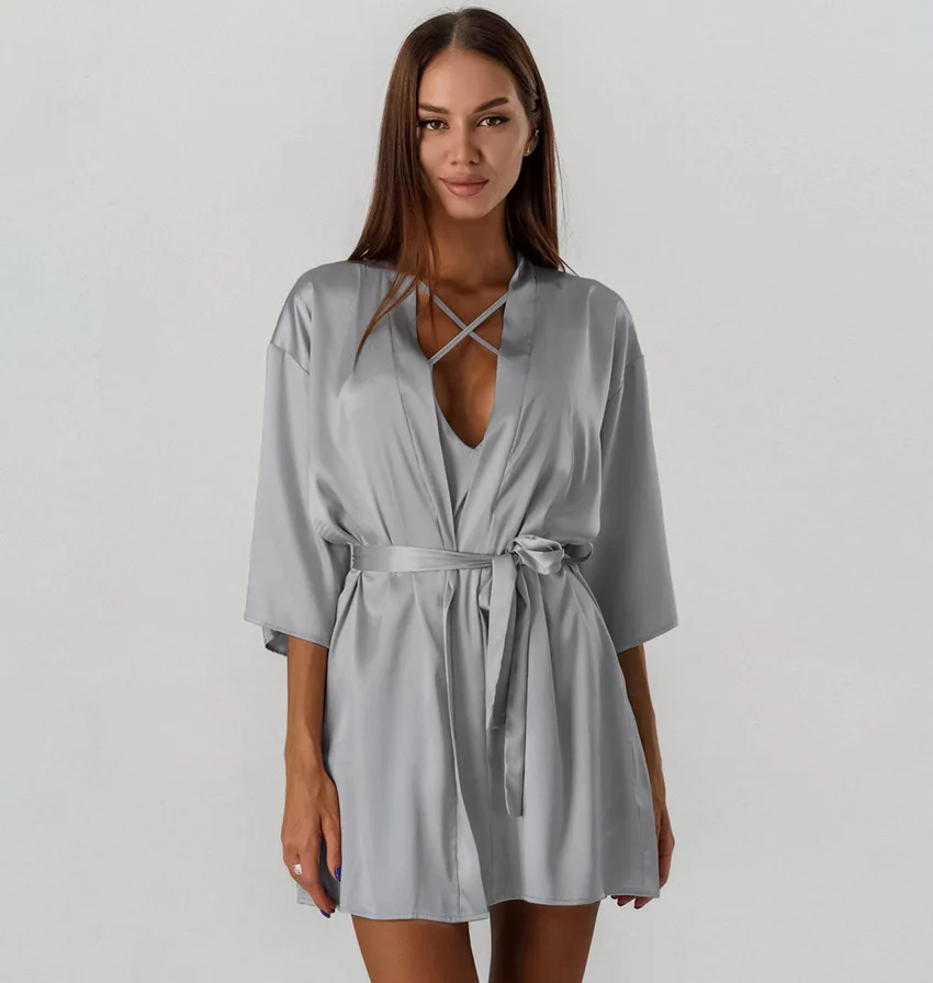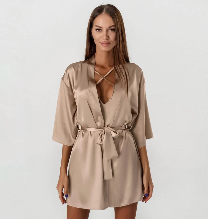 2023 Женская 5/4 рукав пижама кардиган атласная пижама слинг сексуальная пижама платье из двух частей Женская домашняя одежда