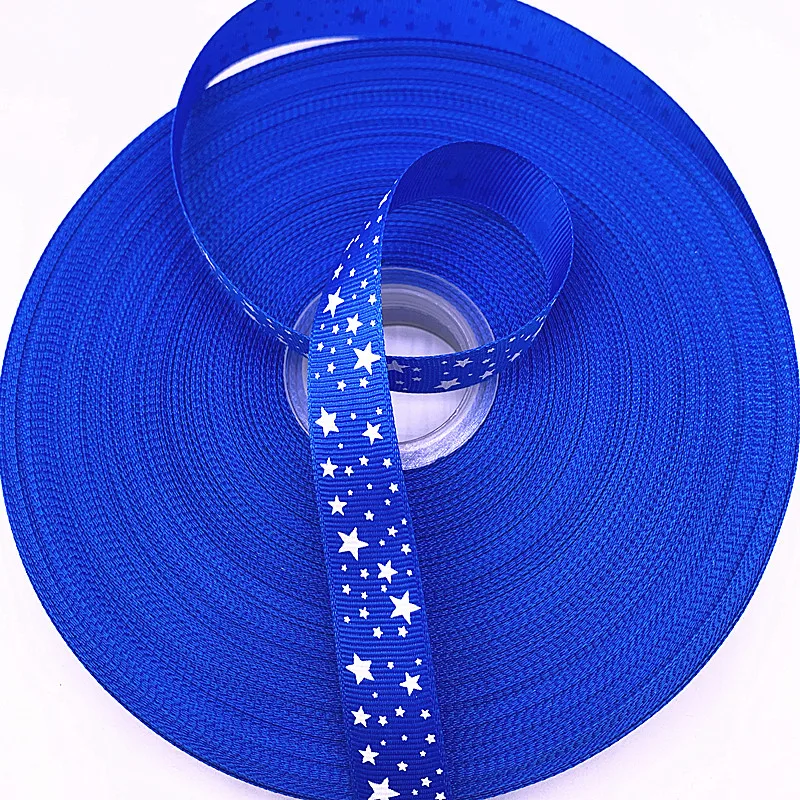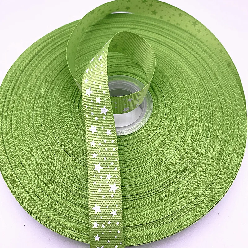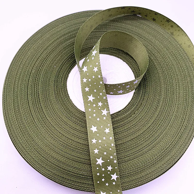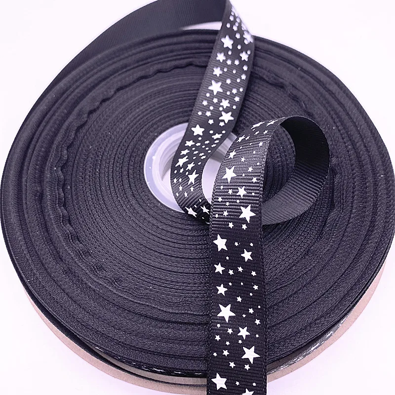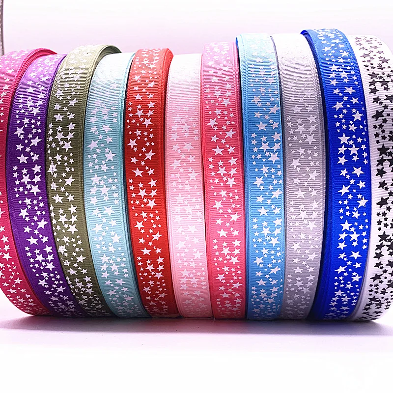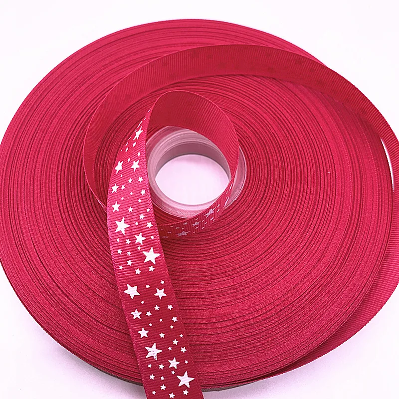 Атласные ленты Grosgrain, 5 ярдов, 15 мм, с принтом звезды для свадьбы, рождественской вечеринки