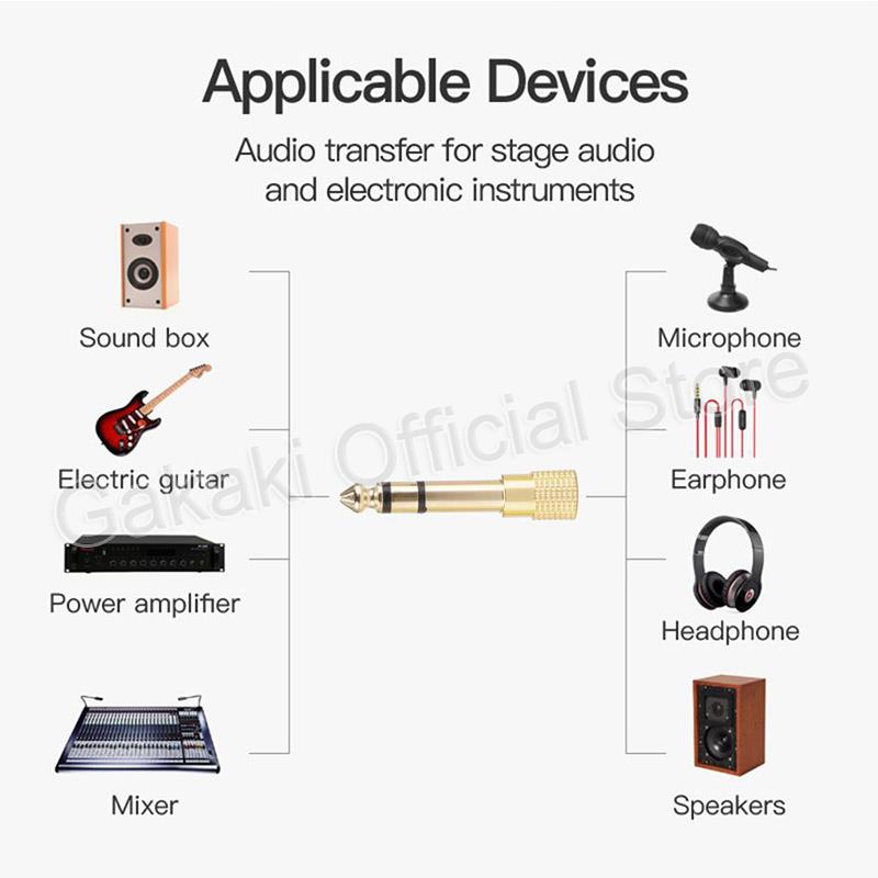 Подходит для преобразования интерфейса 6,5 мм микшера, усилителя, аудиоусилителя в разъем для наушников 3,5 мм, микрофон, динамик или электрическое пианино, клавиатуру, электронный барабан.