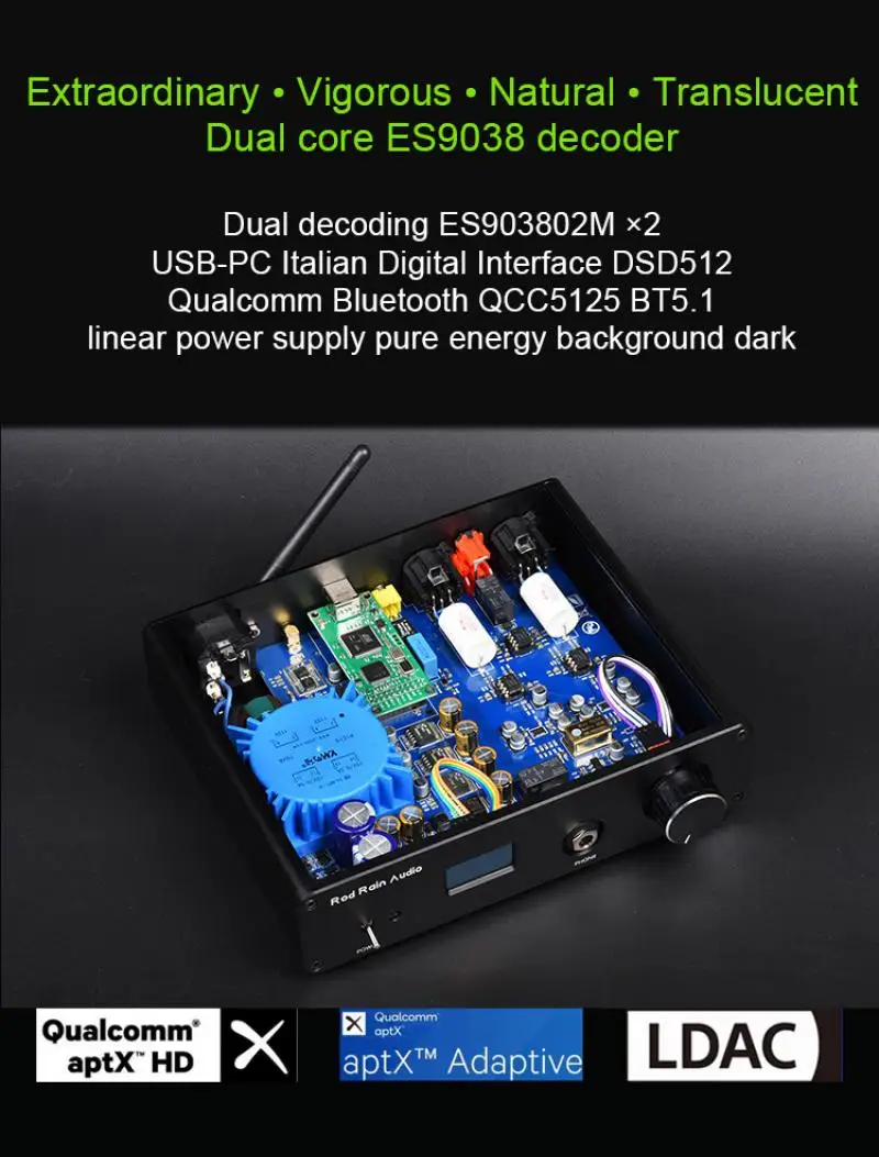 Аудиодекодер Rod Rain Audio DA10, Bluetooth-усилитель для наушников, Двойной ЦАП ES9038Q2M QCC5125 LDAC, USB-карта DSD512, TPA612A2