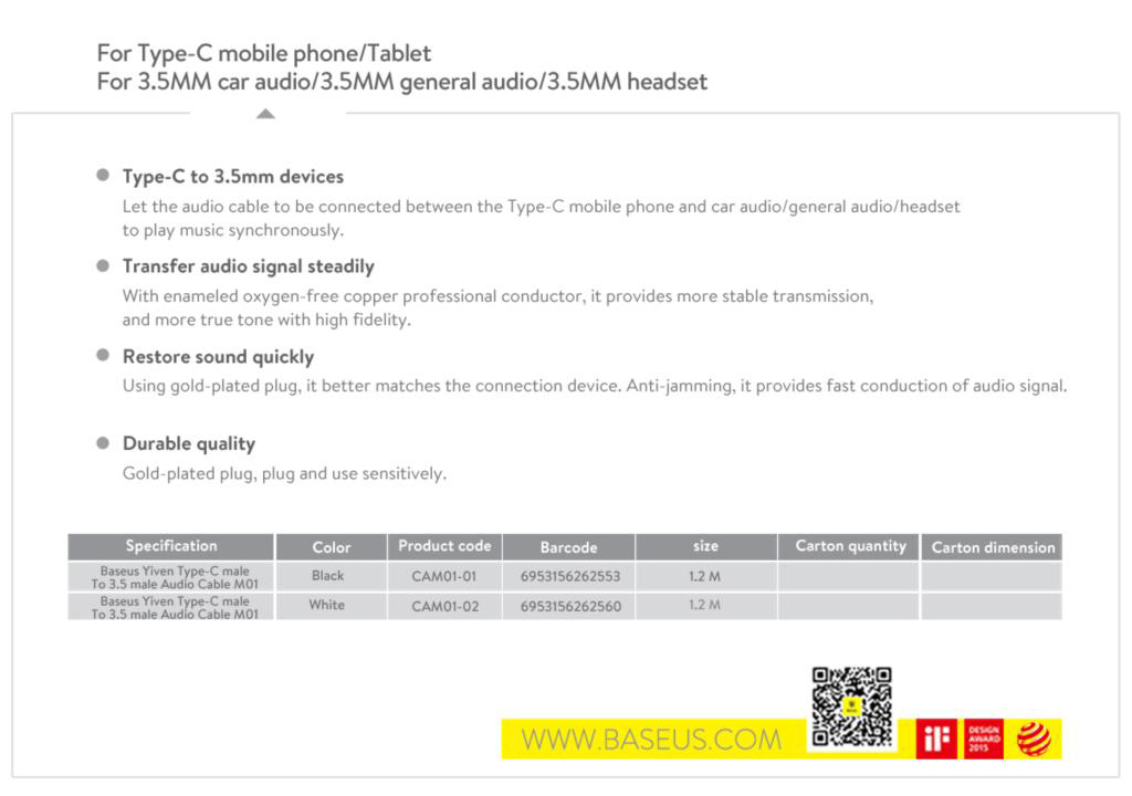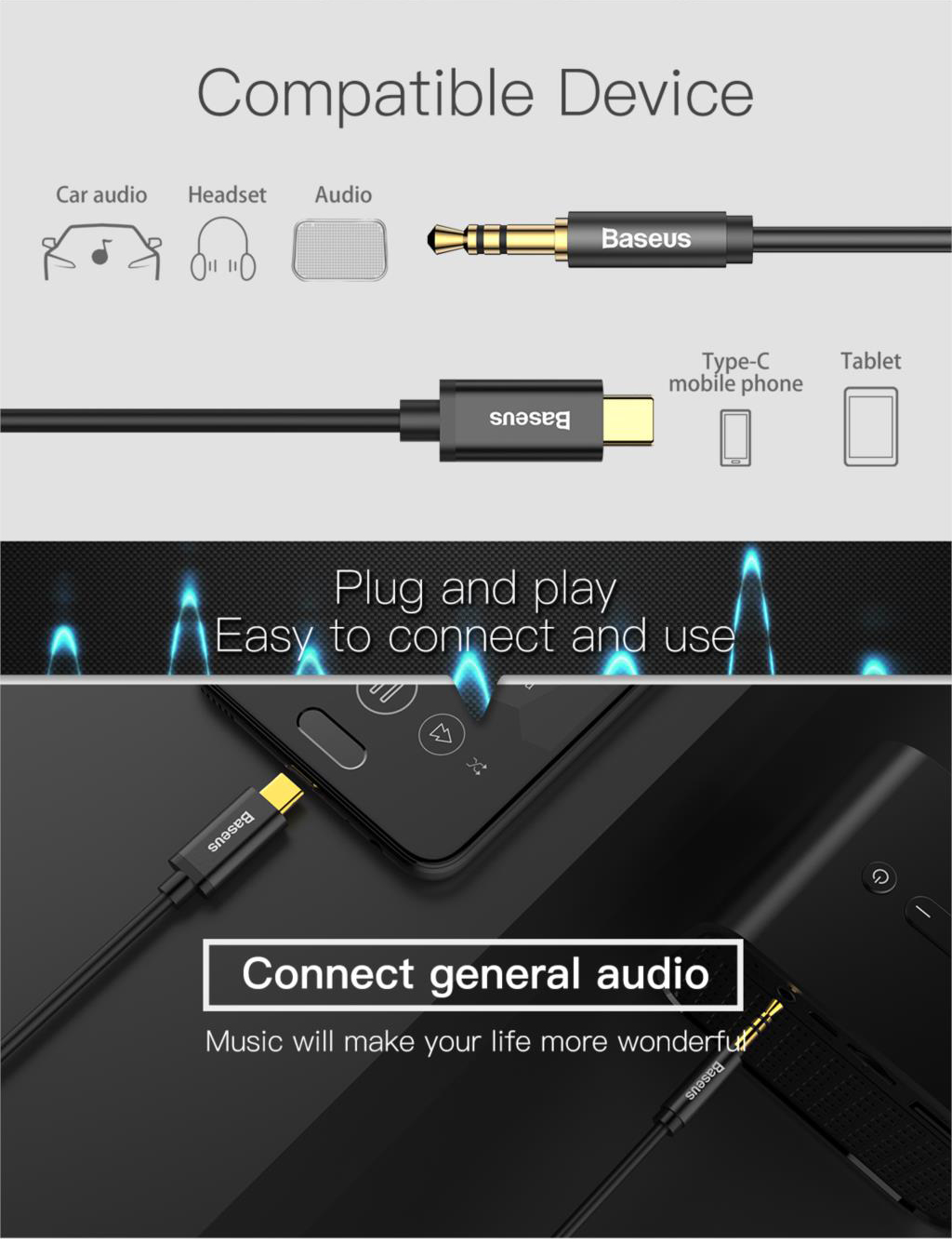 Type Baseus Aux Audio Cable