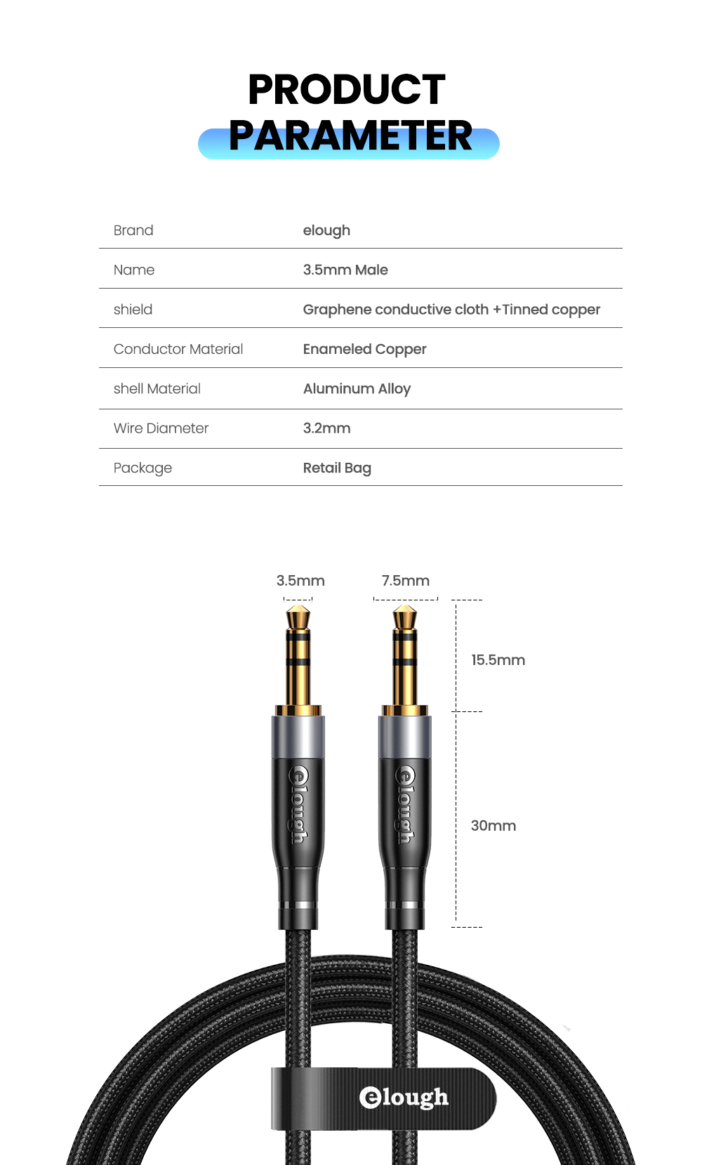 Аудиокабель Elough со штекером 3,5 мм и штекером 3,5 мм