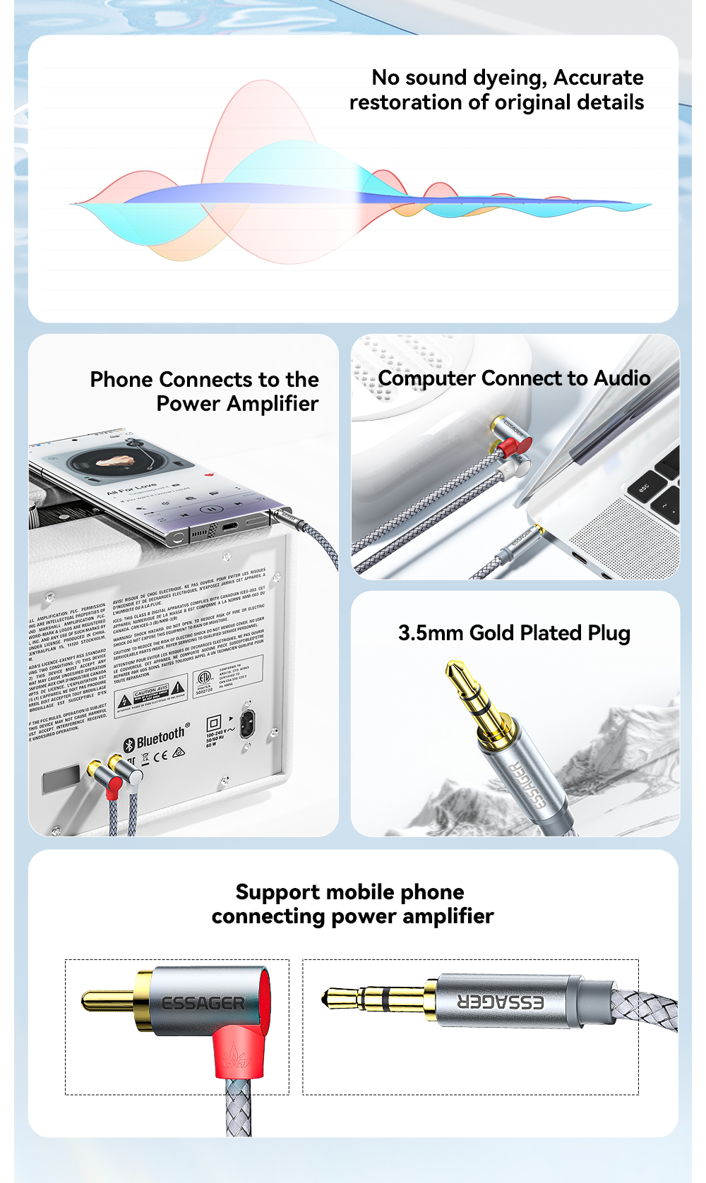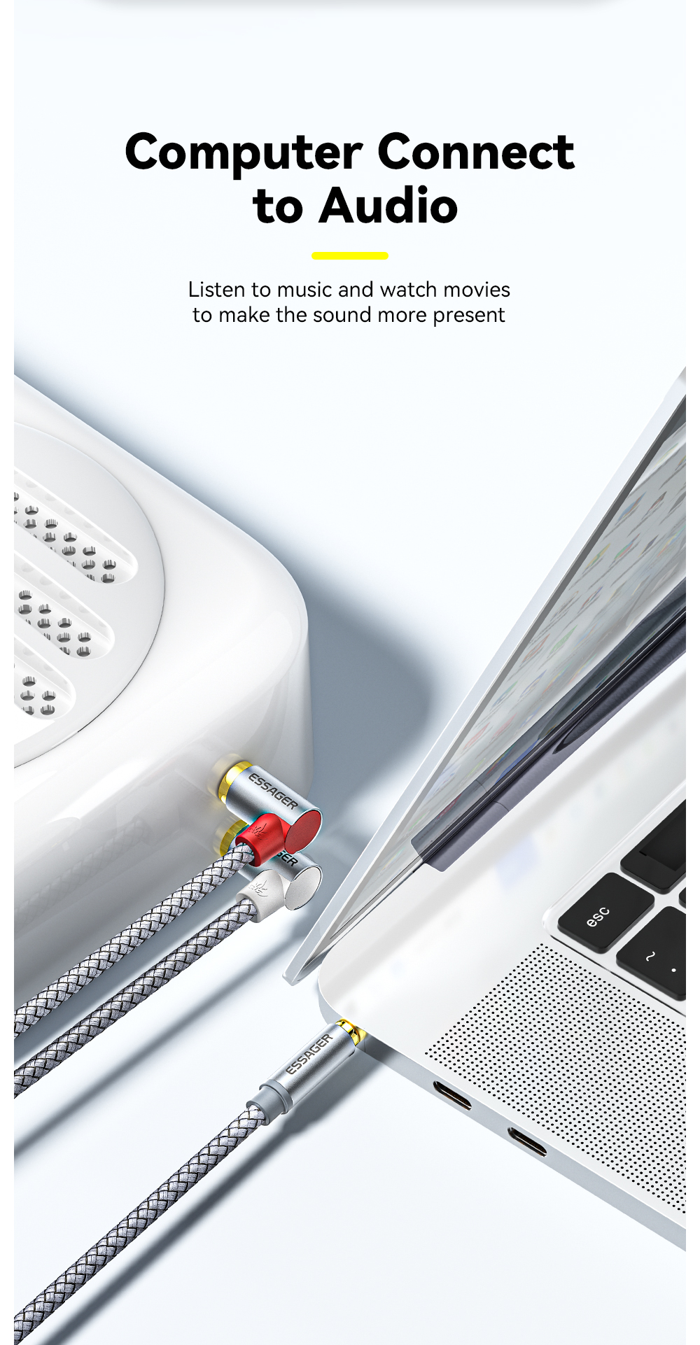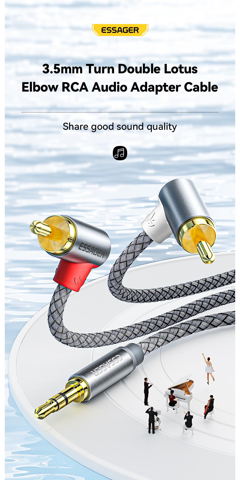 Аудиокабель Essager RCA с разъемом 3,5 на 2 RCA, штекер 3,5 мм на 2 RCA, кабель для ТВ, ПК, усилителей, DVD, динамиков, провод
