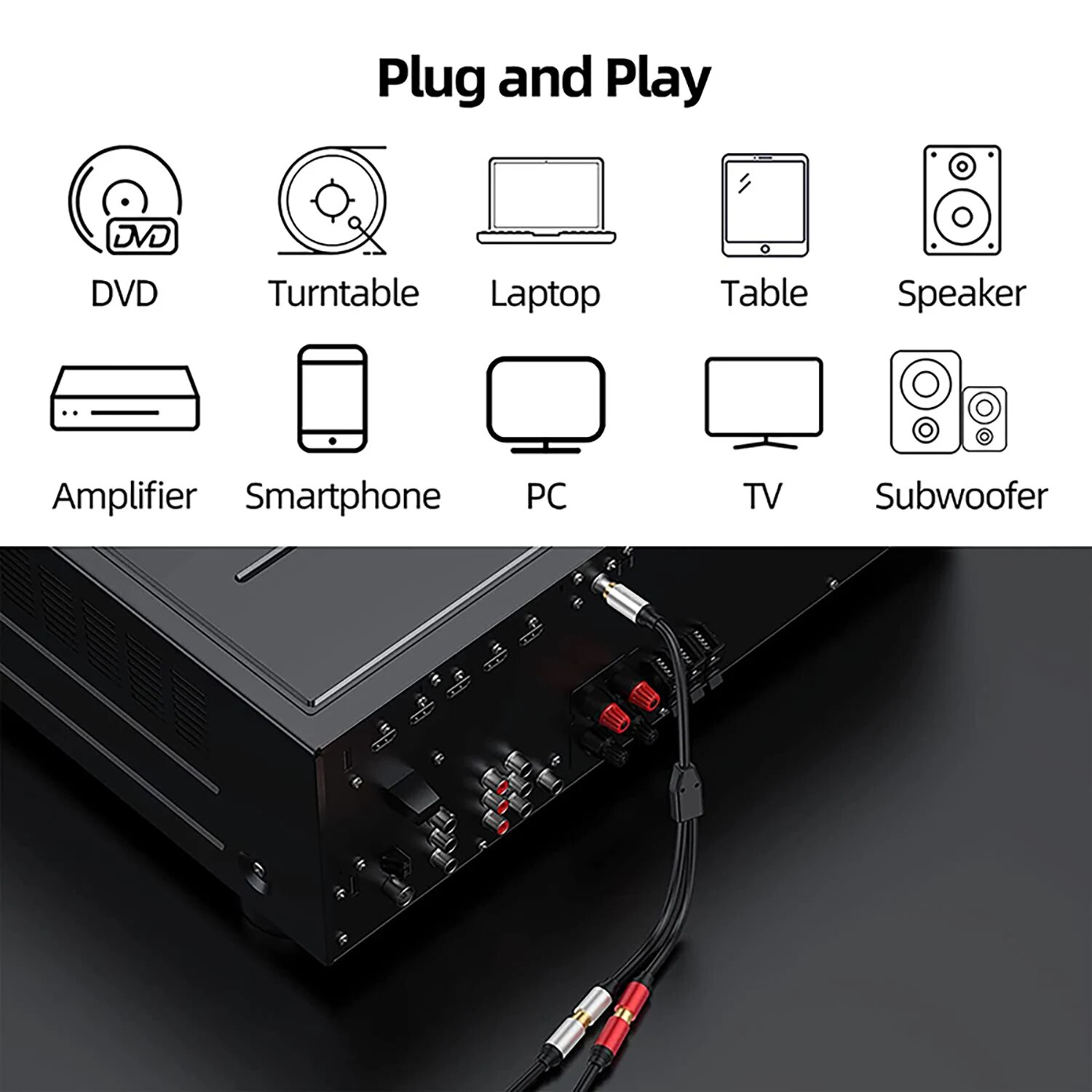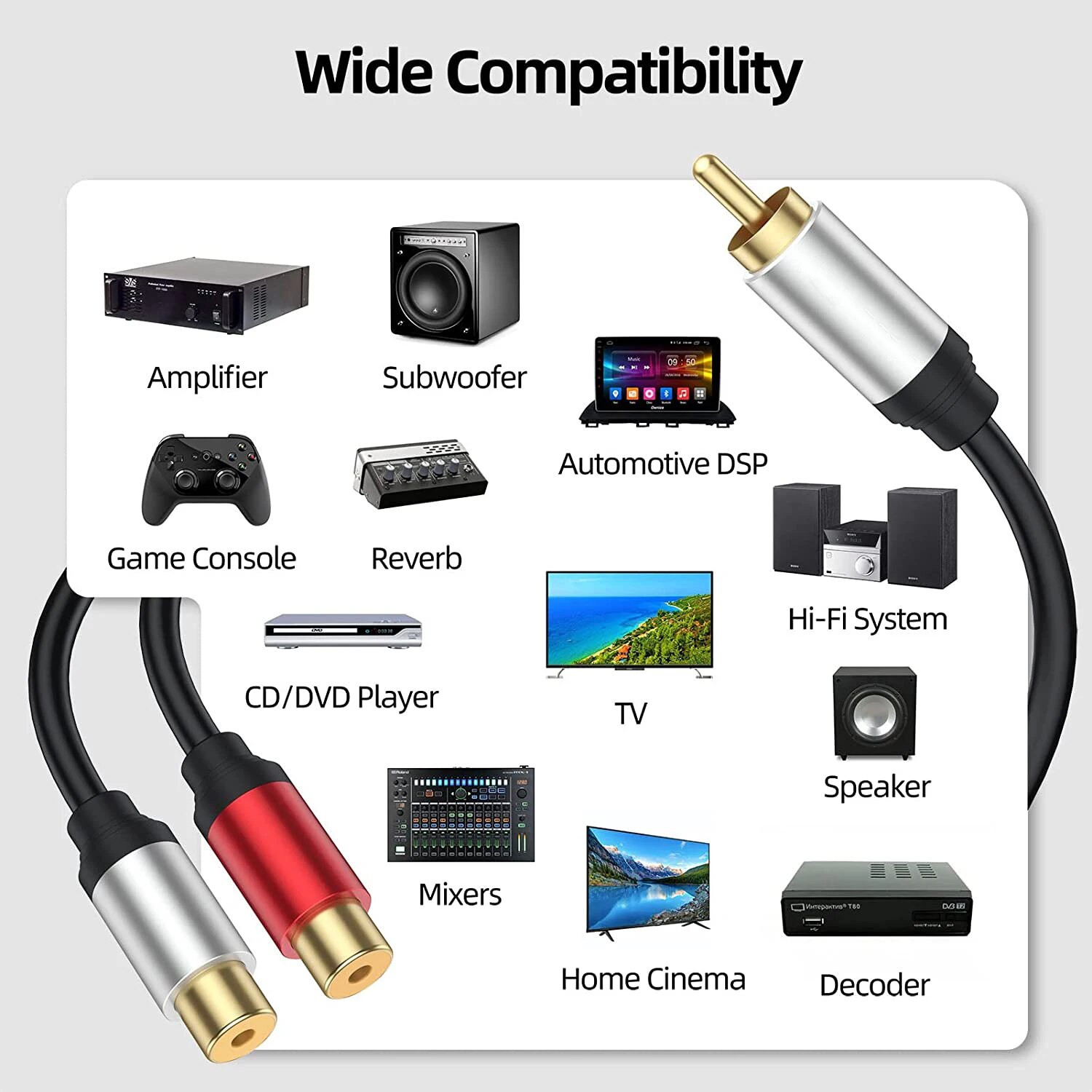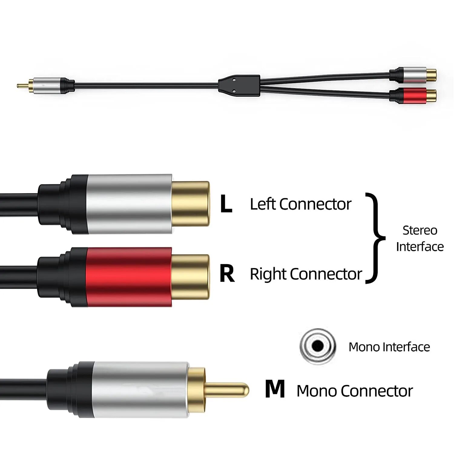 Аудиокабель RCA 0,3 м, 1 фут, 1 штекер-2 гнезда, RCA Y-образный разветвитель
