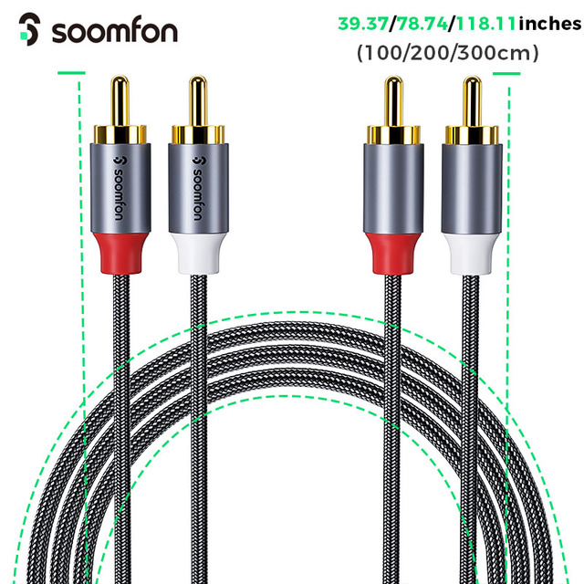 Аудиокабель SOOMFON со штекером 2RCA на штекер 2RCA (1 м/2 м/3 м) позолоченный