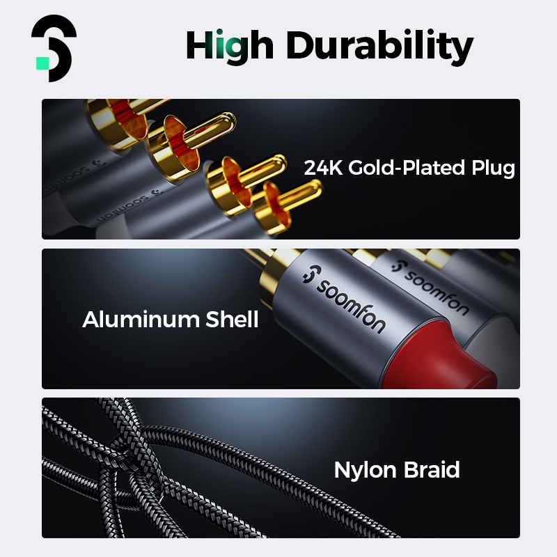 Высокая стойкость:В отличие от материала ПВХ на рынке, Аудиокабели RCA изготовлены из высокопрочной нейлоновой оплетки, обеспечивающей гибкость и прочность;