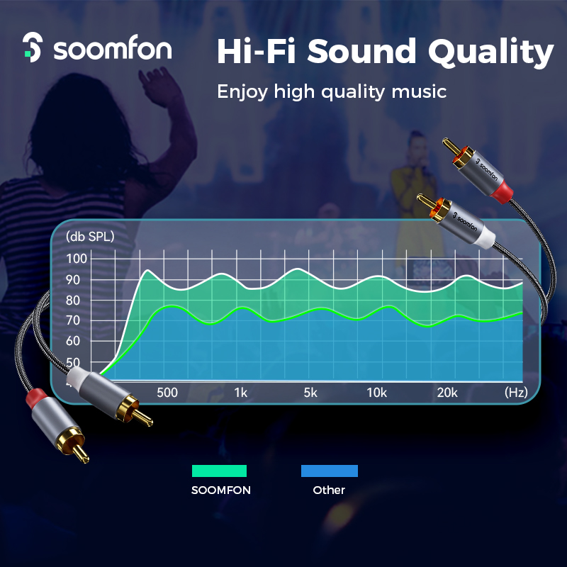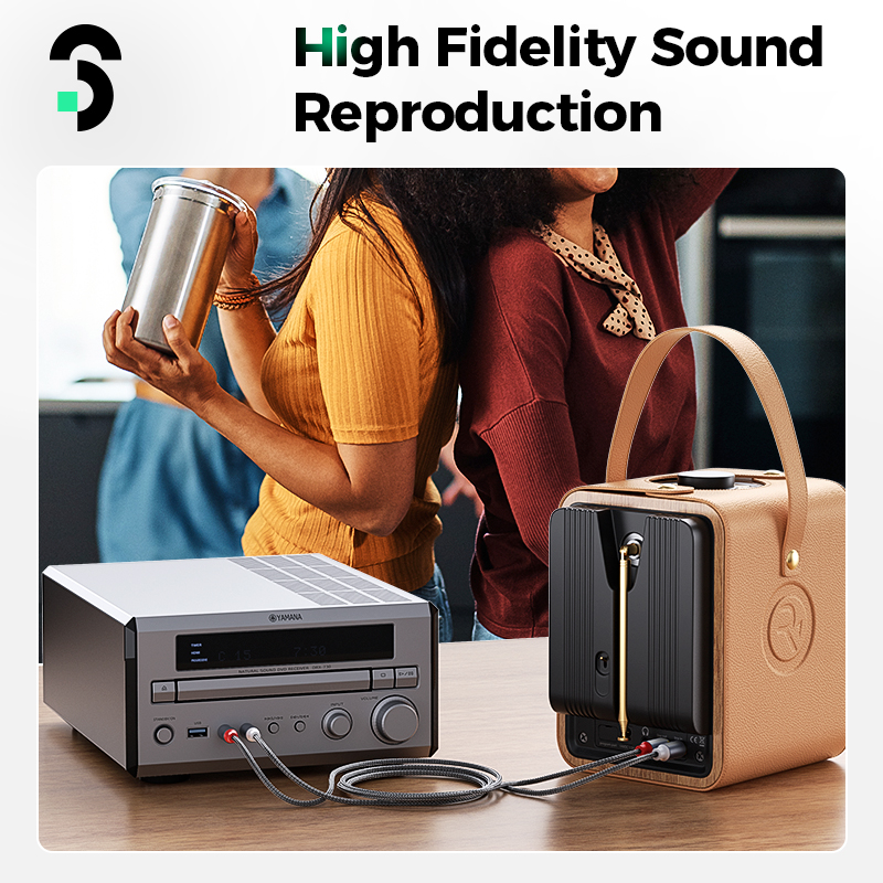 1.Воспроизведение качества звука HiFi:Кабель-переходник 2RCA (вилка) на 2RCA (вилка) оснащен двойным экранированием, полированными разъемами и коррозионно-стойкими позолоченными разъемами 3,5 мм для минимизации потерь сигнала и обеспечения чистого звука.