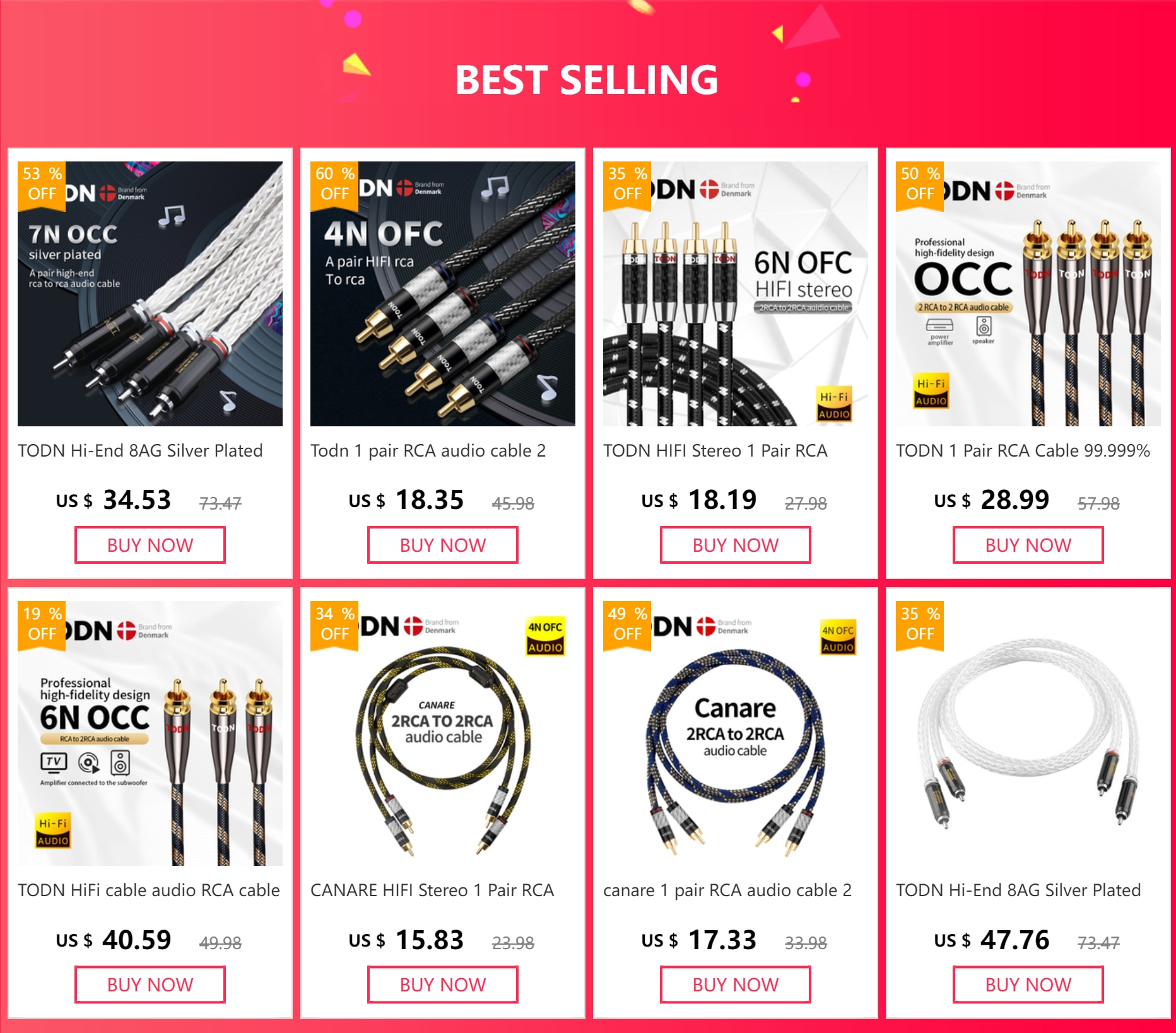 Product name: TODN 7N High-End RCA to RCA Audio Cable (one pair)