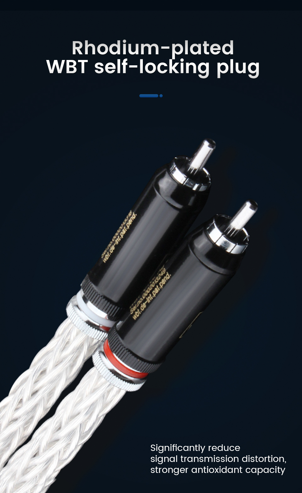 2. Rhodium-plated WBT self-locking plug Significantly reduce signal transmission distortion, stronger antioxidant capacity