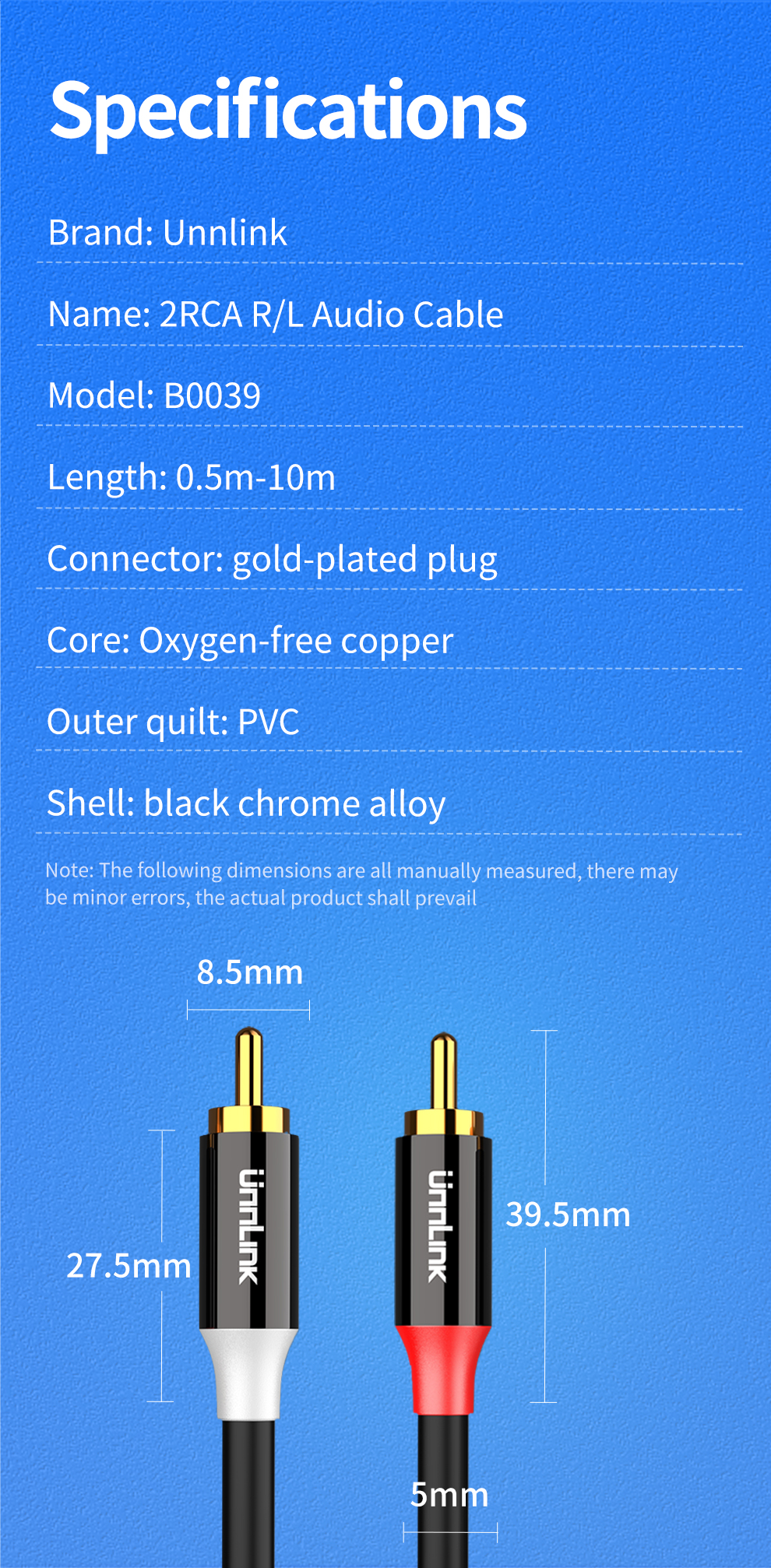 Аудиокабель Unnlink Hifi 2RCA к 2RCA