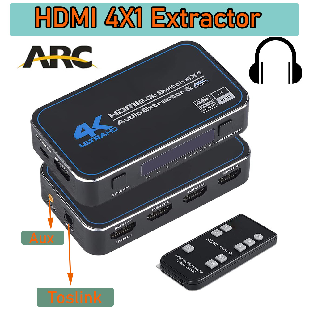 Аудиопереключатель HDMI 2,0, 60 Гц, 4K, HDR, ARC