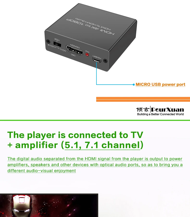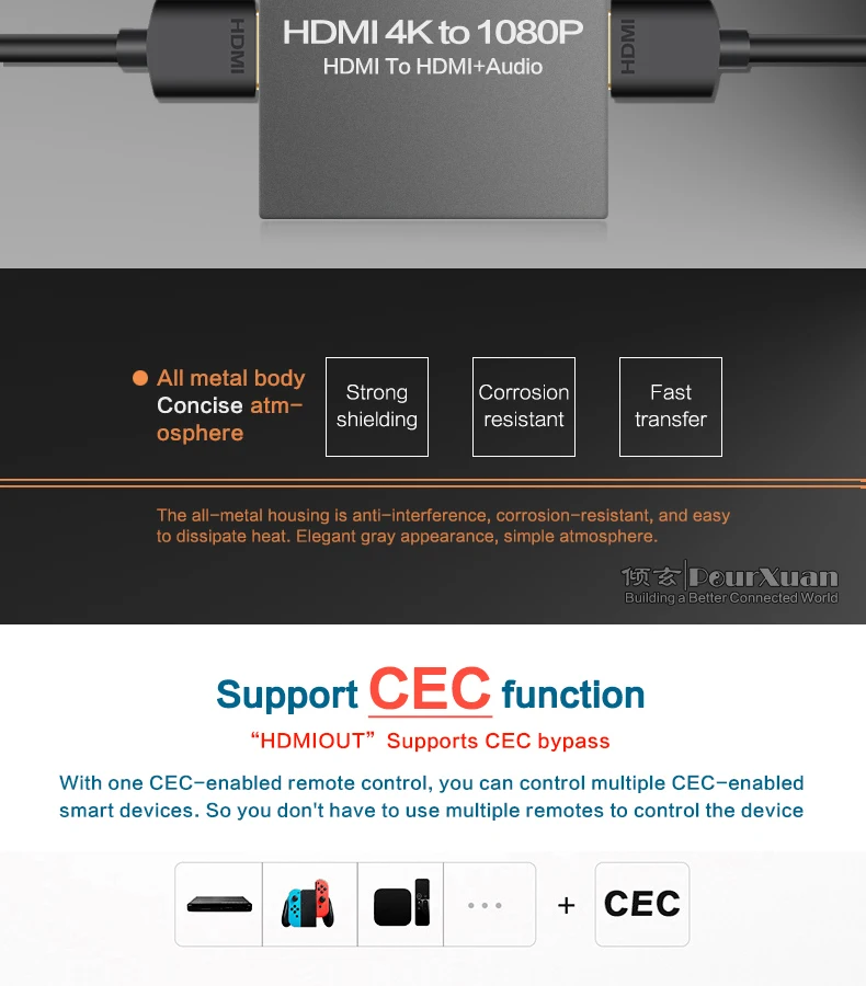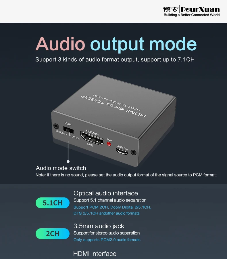 Аудиопреобразователь HDMI 2,0, 1080 каналов