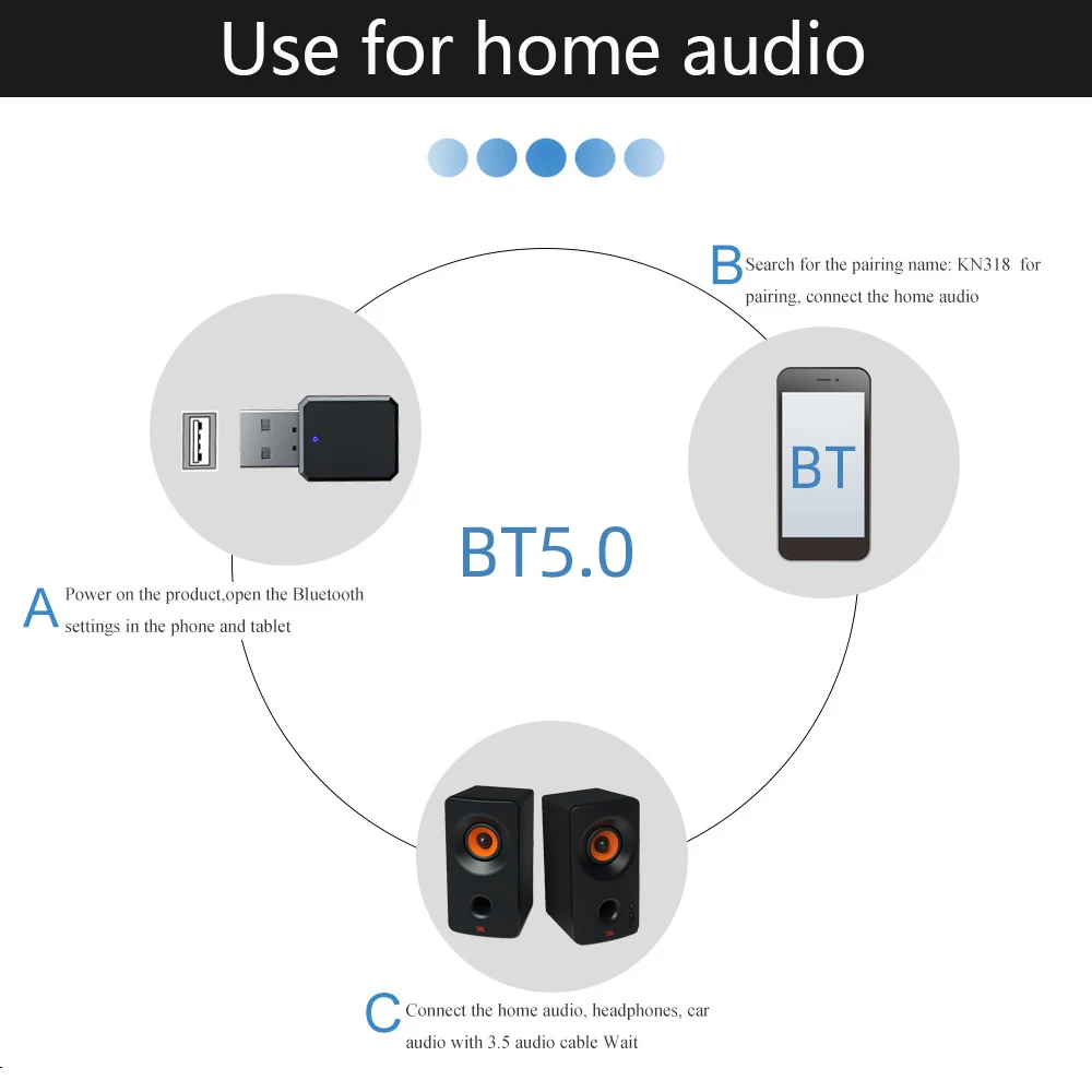 1. Режим USB не требует использования аудиокабеля 3,5. Его можно напрямую подключить к автомобильному USB-интерфейсу и USB-интерфейсу динамика, а также можно использовать сразу после сопряжения с телефоном.