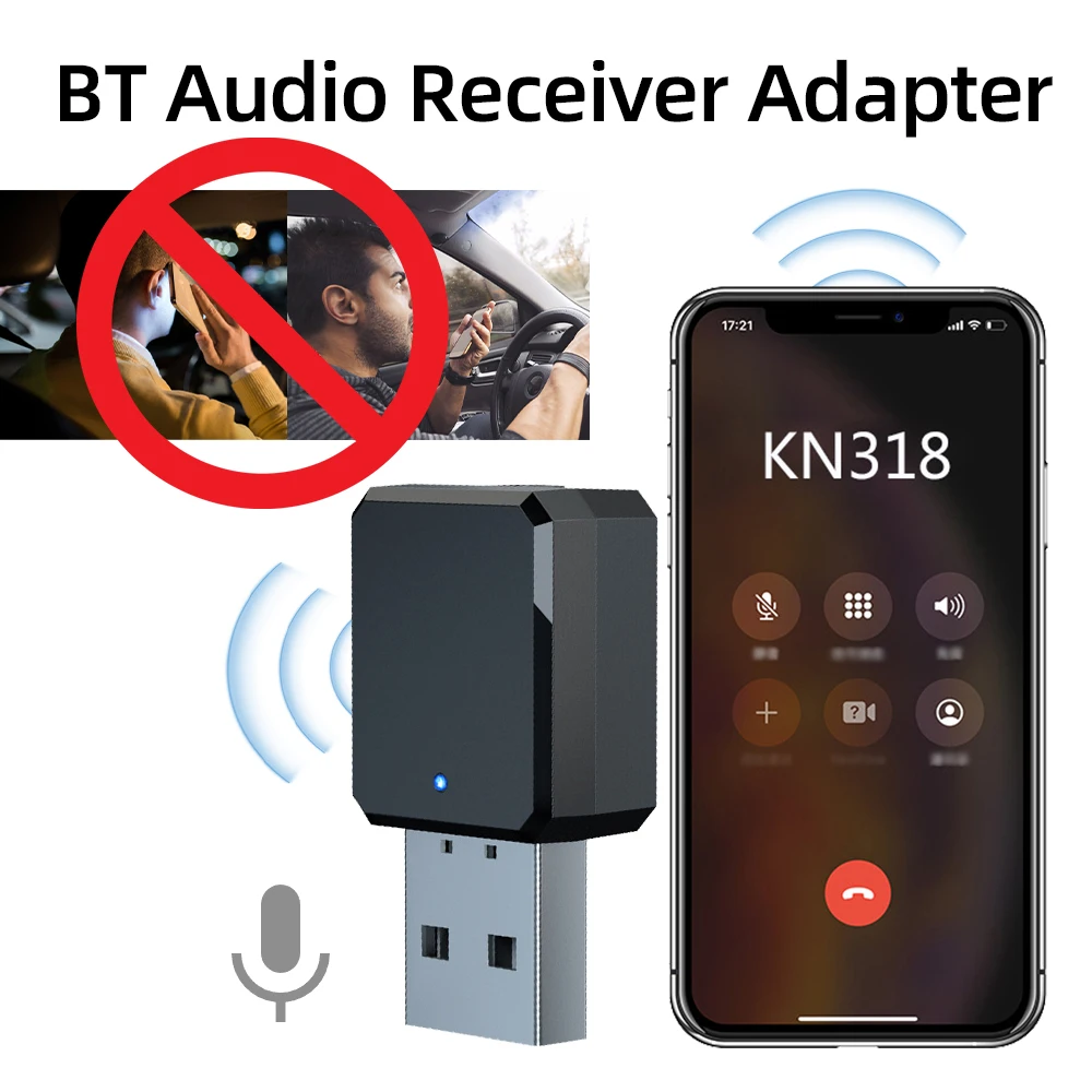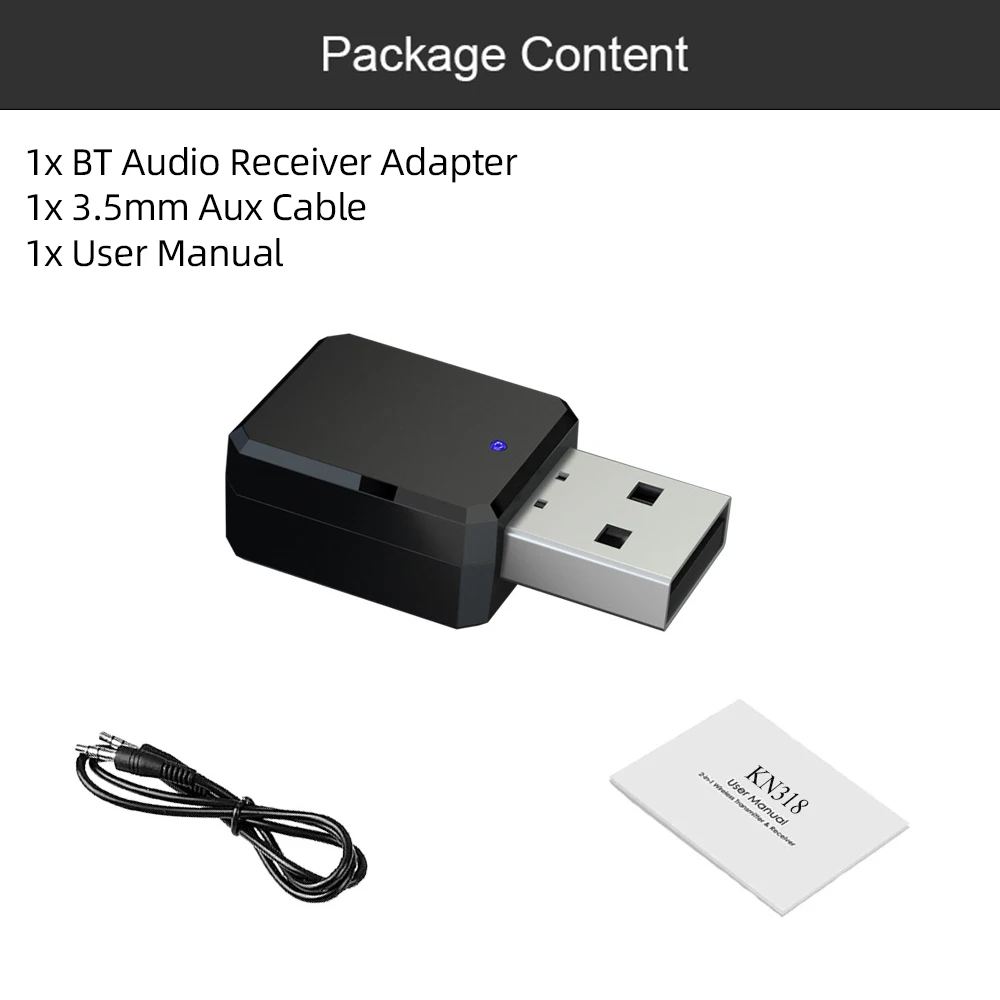 Аудиоприемник KN318, Bluetooth 5,1, двойной выход, AUX, USB, стерео, автомобильный беспроводной адаптер громкой связи, видеоприемник, аудиоадаптер