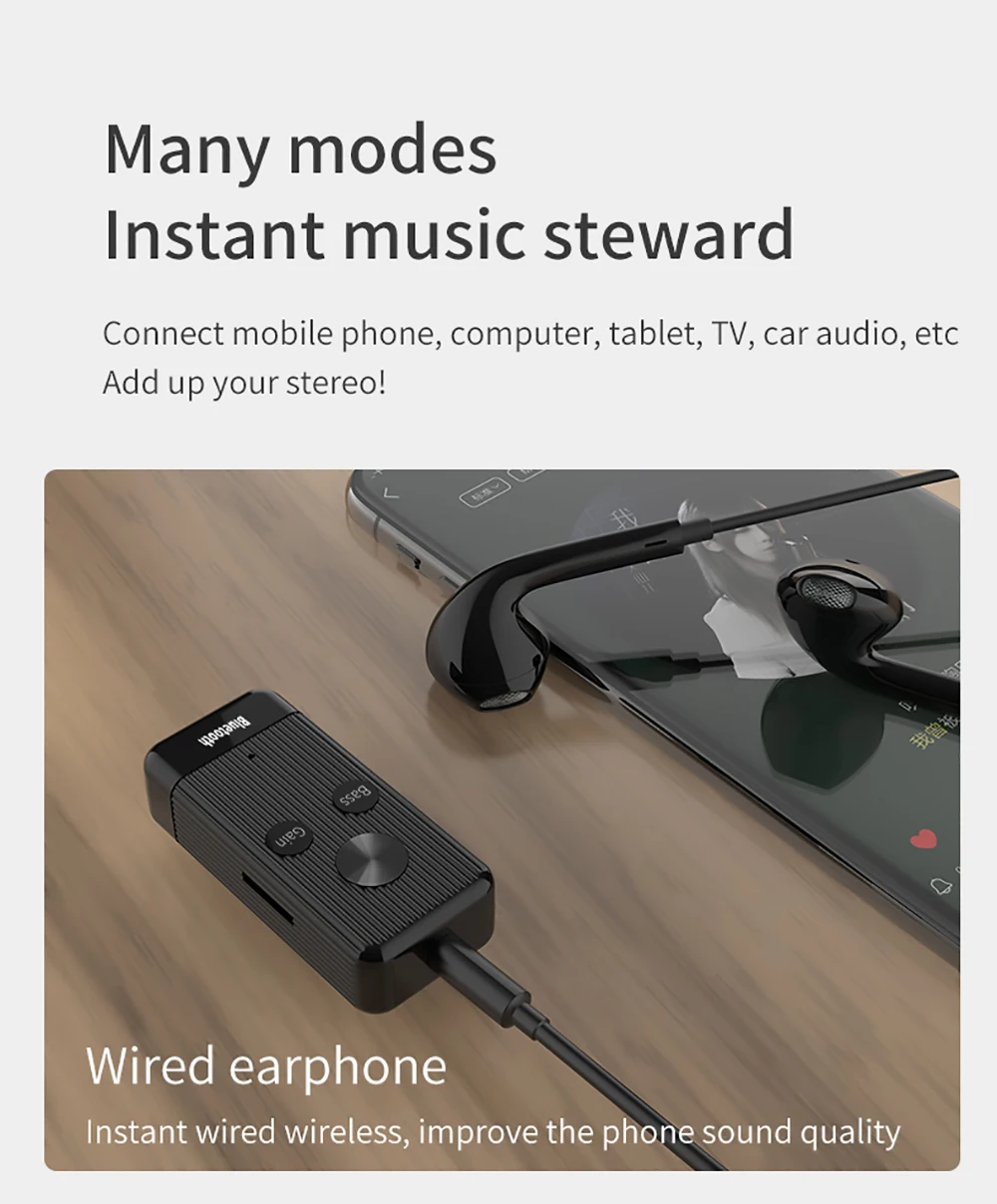 4. Поддержка TF/Micro SD play, вставьте карту, адаптер изменится в режим воспроизведения карты, вытащите карту будет режим Bluetooth