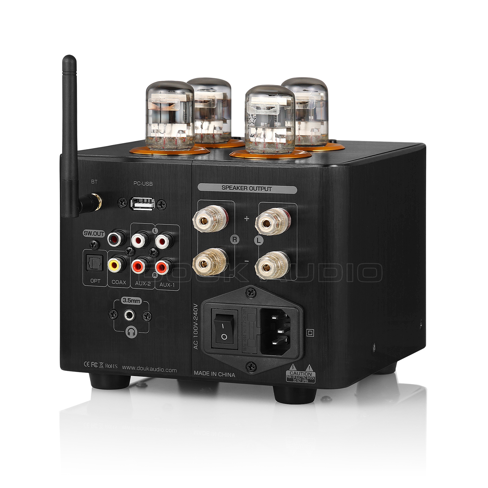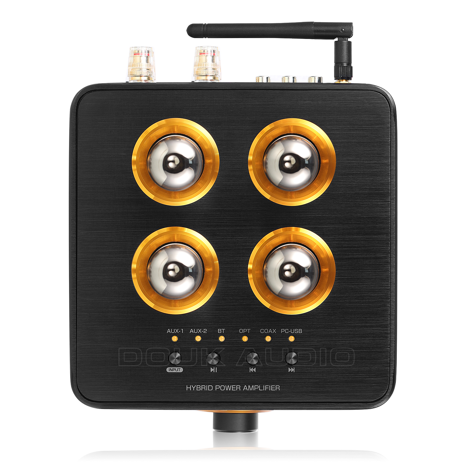 • Винтаж выглядит специально с VU meter: Изысканная черная панель сочетается с ретро вакуумными трубками и VU meter для динамического украшения домашнего рабочего пространства. С независимыми функциональными кнопками и индикаторами ввода на верхней панели, проста в использовании, очень подходит для использования Домашней и настольной аудиосистемы.