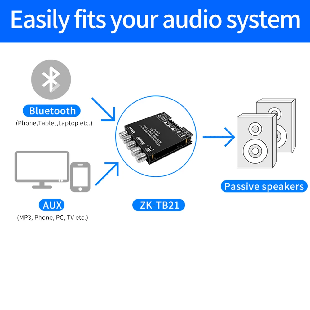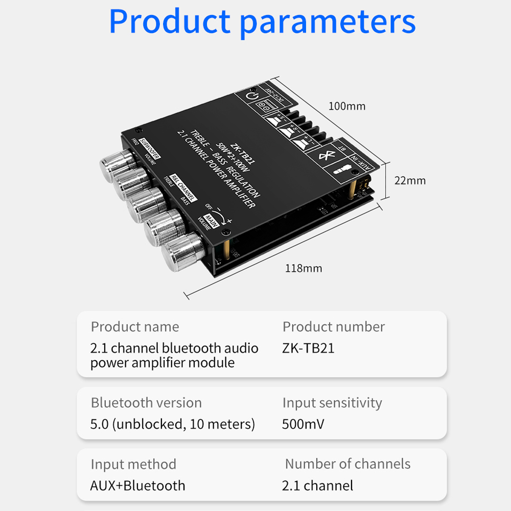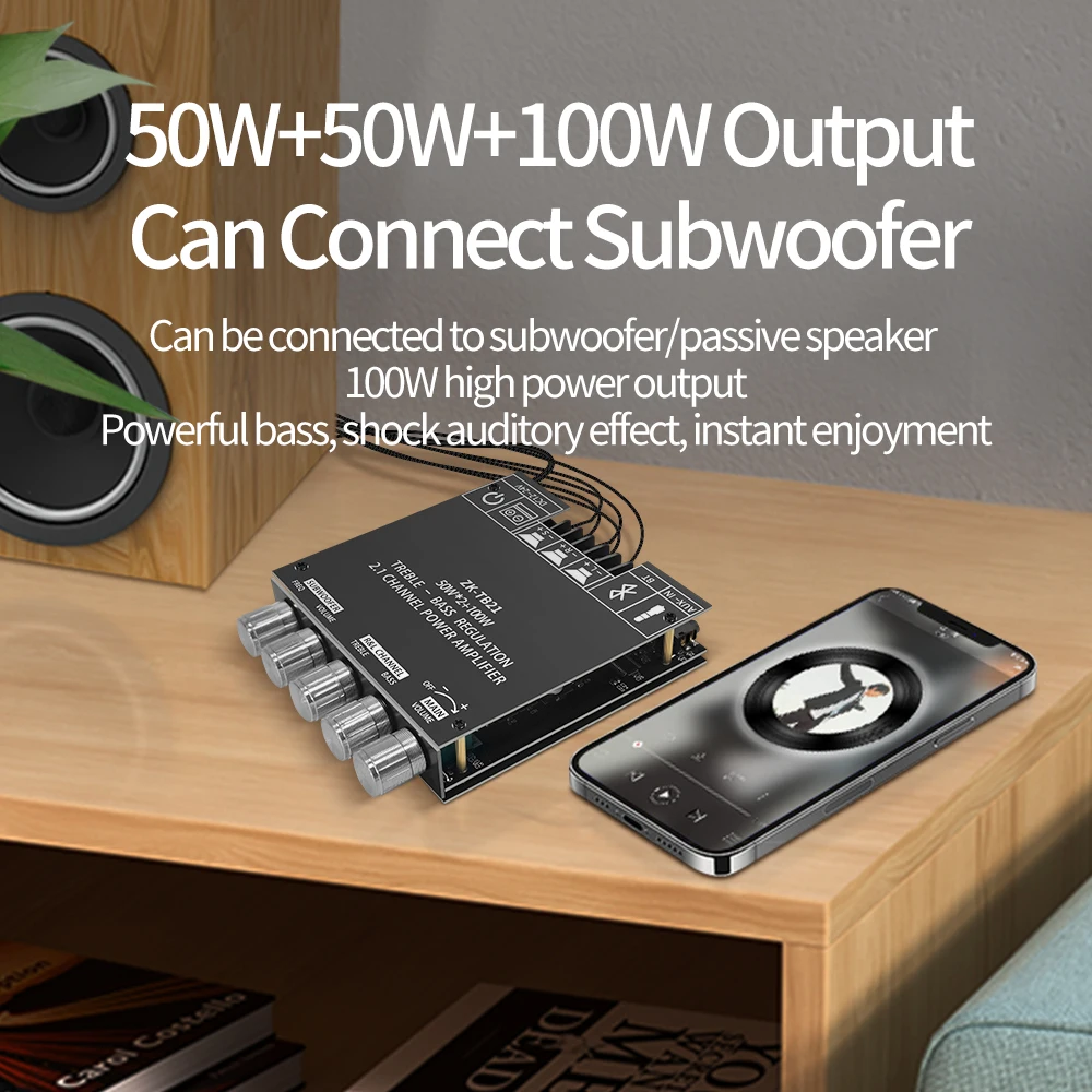 Аудиосистема, Bluetooth усилитель, канал 2,1, стерео аудио усилитель 50 Вт x2 + 100 Вт для караоке, домашнего кинотеатра, звуковая система
