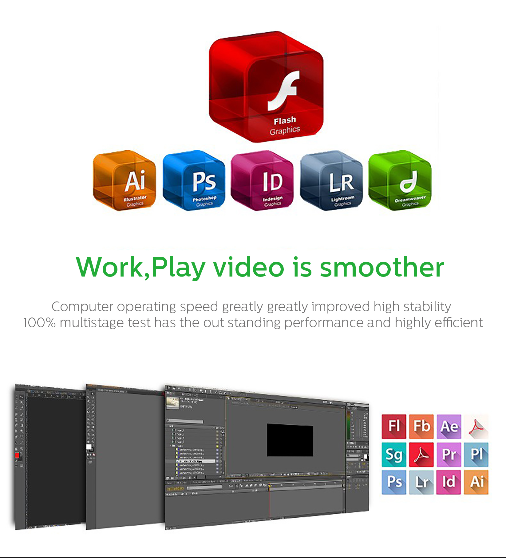 Каждая память Avanshare с помощью различных типов ручного тестирования позволяет использовать продукт в различных прикладных средах, обеспечивая пользователям как высокую производительность, так и высокую стабильность работы на компьютере.