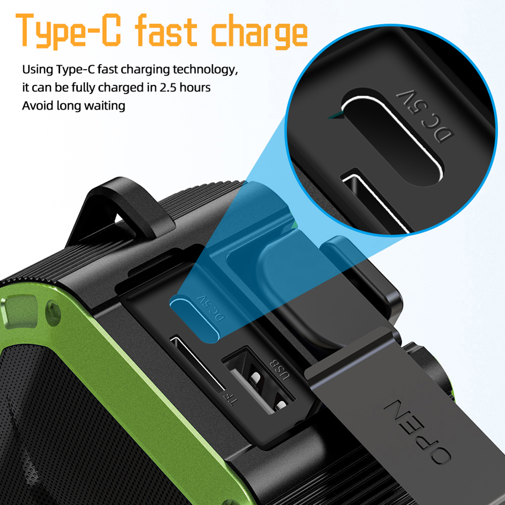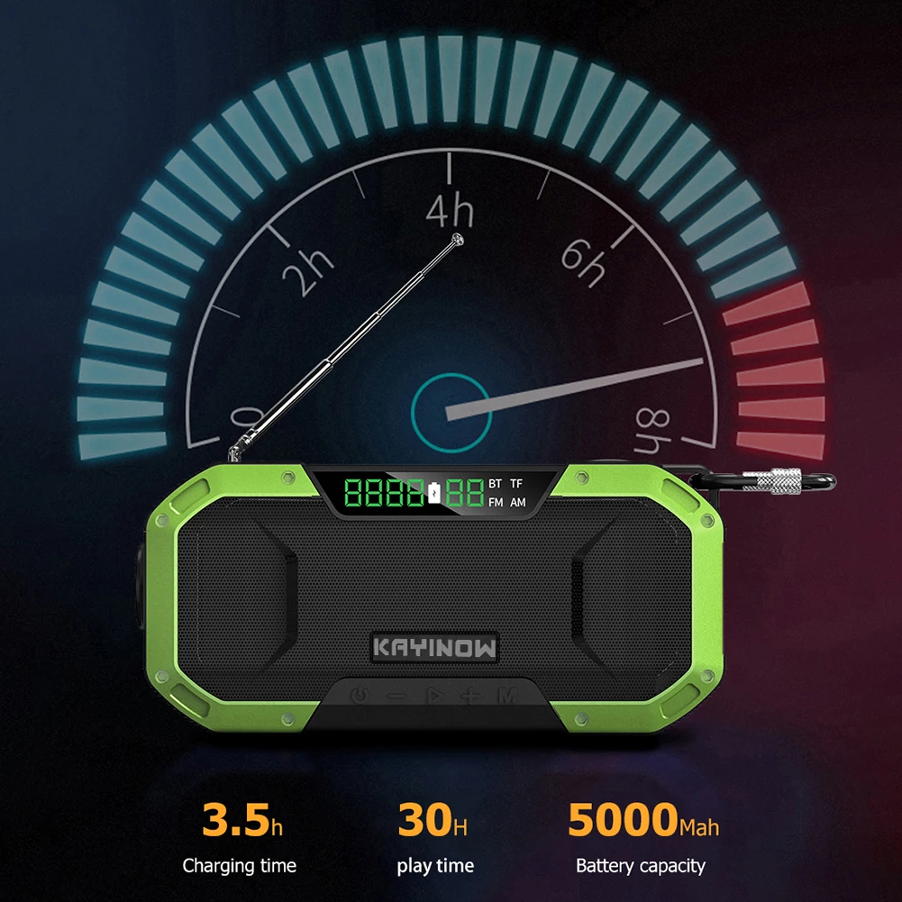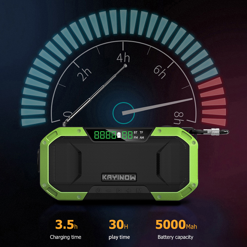 Многофункциональный портативный Bluetooth-совместимый динамик с рукояткой Солнечное радио AM/FM Наружное аварийное радио Светодиодный фонарик и 5000 мАч Power Bank IPX5 Водонепроницаемый