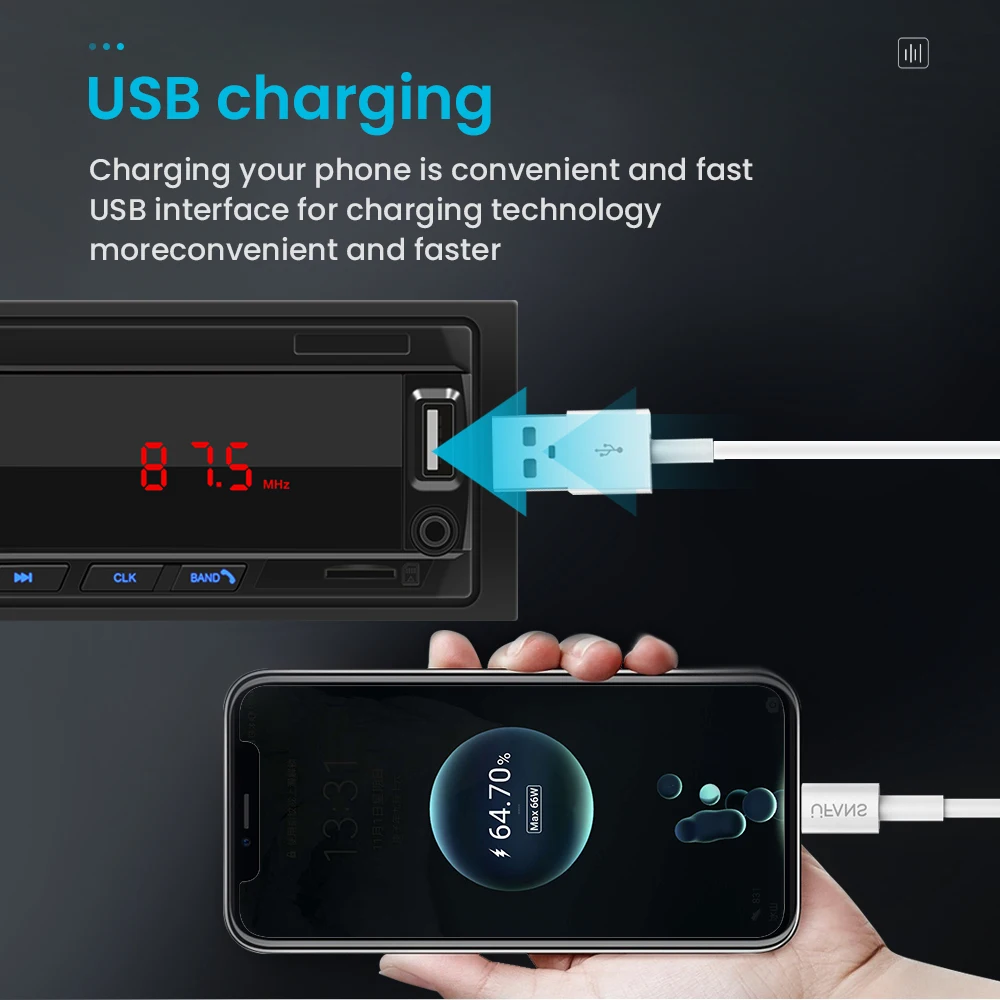 Автомобильный MP3-плеер FM-радиоприемник с Bluetooth AUX-входом USB-слот для карт TF Пульт дистанционного управления Автомобильное стерео радио в приборной панели
